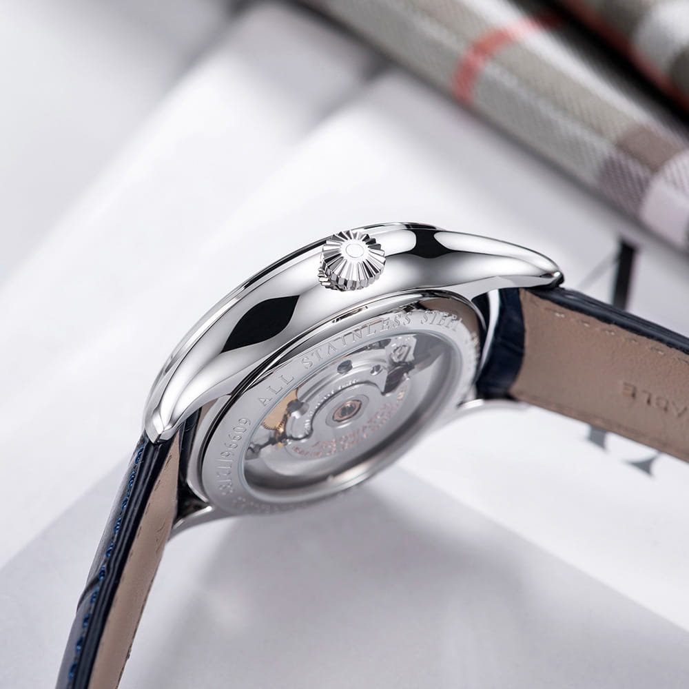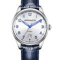 Мужские механические швейцарские часы с автоподзаводом Aerowatch Les Grandes Classiques 60996 AA01. Сапфировое стеклоСапфировое стеклоПрочный и надёжный материал из кристалла сапфира синтетического происхождения, характеризующийся особой твёрдостью и устойчивостью к царапинам и повреждениям. устойчивое к появлению царапин, обладающее высокой прозрачностью. Корпус изготовлен из нержавеющей стали. В часах установлен калибр 2824-2 ETA с 25 камнями, ротором. Серебристый sunray циферблат украшен синими арабскими цифрами и скелетонизированными стрелками, окошко даты в положении 6 часов. Класс водозащиты: 50 метров, позволит защитить корпус от случайных брызг или капель дождя. Кожаный ремешок на стандартной застёжке.