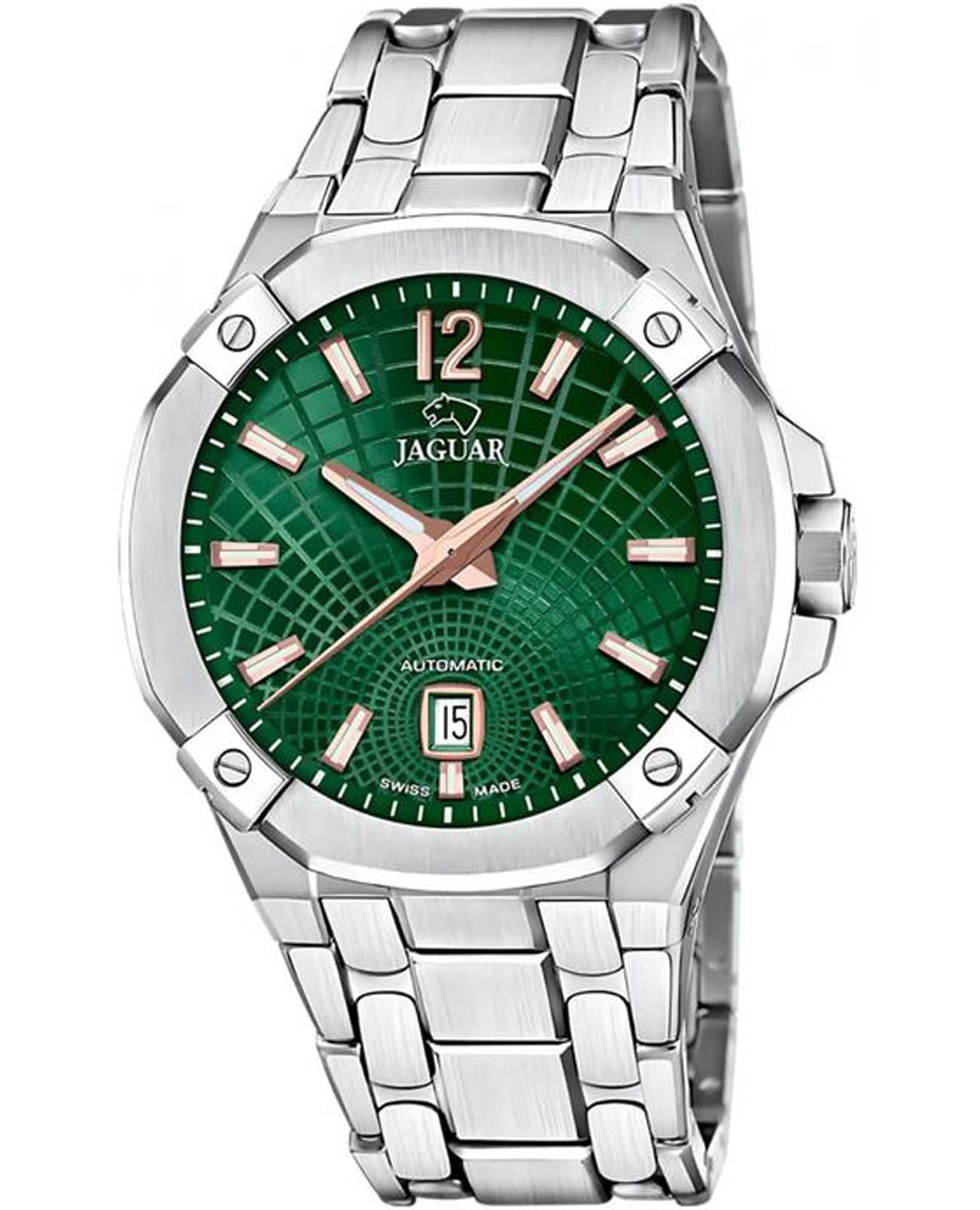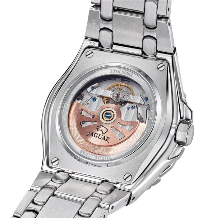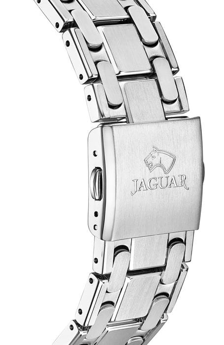 Мужские швейцарские часы Jaguar Diplomatic J1029/3 представляют собой воплощение высокого часового искусства. Они оснащены механическим механизмом с автоподзаводом, что обеспечивает точность и надёжность работы. Часы защищены сапфировым стекломСапфировое стеклоПрочный и надёжный материал из кристалла сапфира синтетического происхождения, характеризующийся особой твёрдостью и устойчивостью к царапинам и повреждениям., устойчивым к мелким механическим повреждениям, что гарантирует сохранность механизма. Корпус часов выполнен из нержавеющей стали, придающий ему прочность и долговечность. Стрелки и метки часов покрыты люминесцентным составомЛюминесцентное покрытиеПозволяет считывать показания времени в темноте. Производители наносят на стрелки, часовые индексы, безель или поверхность циферблата светонакопительный состав, дающий холодное свечение., обеспечивающий их хорошую видимость в условиях недостаточной освещённости. Окошко даты расположено в положении 6 часов. Класс водозащиты часов составляет 100 метров, что позволяет плавать, нырять и заниматься другими водными видами спорта. Изысканный стальной браслет на раскладной застёжкеРаскладная застёжкаТакой тип застёжки используется только на браслетах из металла. Она никогда не раскрывается полностью, происходит разделение на 2 и более частей. Раскладывающая застёжка снизит вероятность потери часов к минимуму., что обеспечивает удобство и комфорт при ношении. Стильный  циферблат и изысканные детали делают эти часы незаменимым аксессуаром для любого случая, от официальных мероприятий до повседневного использования.