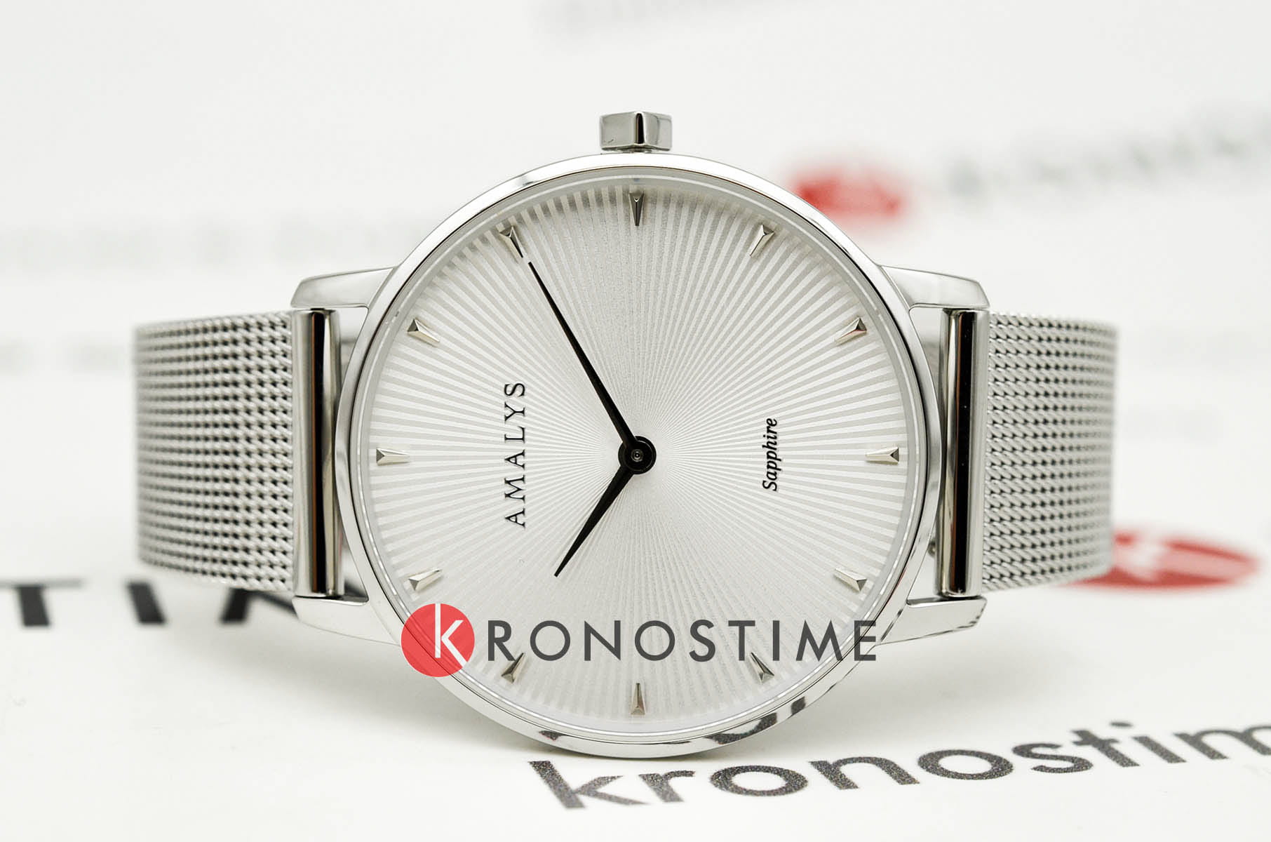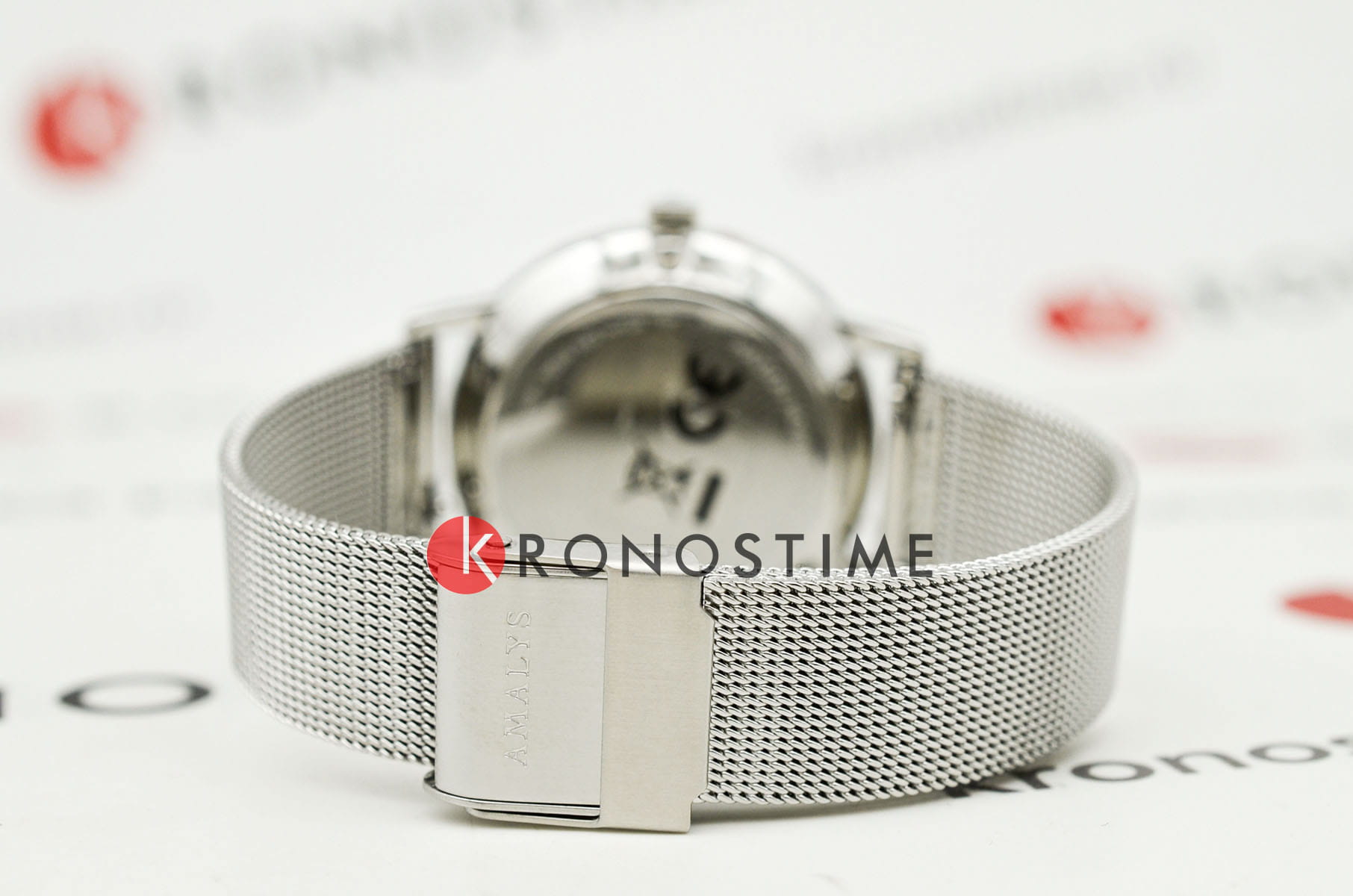 Amalys AMW-194 — женский набор, включающий часы и браслет, выполненный в едином элегантном стиле. Круглый корпус диаметром 33 мм изготовлен из нержавеющей стали, что подчёркивает изысканный характер модели. Защитную функцию выполняет сапфировое стеклоСапфировое стеклоПрочный и надёжный материал из кристалла сапфира синтетического происхождения, характеризующийся особой твёрдостью и устойчивостью к царапинам и повреждениям., стойкое к царапинам и сохраняющее прозрачность. Механизм — кварцевый, обеспечивающий точность хода и удобство в использовании. Водозащита 3 ATM защищает от случайных брызг и дождя. Циферблат оформлен в минималистичном стиле с тонкими метками и изящными стрелками, подчёркивающими женственный образ. Стальной браслет миланского плетения на раскладном замкеРаскладной замокДанный вариант застежки используется только на часах с металлическим браслетом. Отличительная особенность такого крепления в том, что длина браслета становится универсальной и вы можете самостоятельно отрегулировать нужный вам размер – застежка просто двигается по браслету часов. мягко облегает запястье и гармонично сочетается с корпусом. Дополняющий набор браслет усиливает впечатление цельности и придаёт образу завершённость.