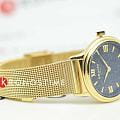 Amalys AMW-200 — женская модель с утончённым классическим дизайном, в которой сочетаются элегантность и практичность. Круглый корпус диаметром 28 мм выполнен из нержавеющей стали с PVD-покрытиемPVDУльтратонкое покрытие наносится в технике вакуумного напыления, сочетает в себе нитрид титана особой прочности со слоем золота или оксида хрома. Несёт в себе декоративную или защитную функцию., гармонирующим с браслетом шириной 14 мм в том же исполнении. Защитную функцию выполняет сапфировое стеклоСапфировое стеклоПрочный и надёжный материал из кристалла сапфира синтетического происхождения, характеризующийся особой твёрдостью и устойчивостью к царапинам и повреждениям., стойкое к царапинам и сохраняющее прозрачность. Механизм — кварцевый, обеспечивающий точность и стабильность хода. Браслет миланского плетения с PVD-покрытиемPVDУльтратонкое покрытие наносится в технике вакуумного напыления, сочетает в себе нитрид титана особой прочности со слоем золота или оксида хрома. Несёт в себе декоративную или защитную функцию. снабжён раскладным замкомРаскладной замокДанный вариант застежки используется только на часах с металлическим браслетом. Отличительная особенность такого крепления в том, что длина браслета становится универсальной и вы можете самостоятельно отрегулировать нужный вам размер – застежка просто двигается по браслету часов., который сочетает надёжность фиксации и удобство повседневного использования. Водозащита 5 ATM защищает часы от случайных брызг и дождя. Циферблат с римскими индексами и изящными стрелками подчёркивает классическую эстетику модели, делая её уместной как в повседневных образах, так и в торжественной обстановке.