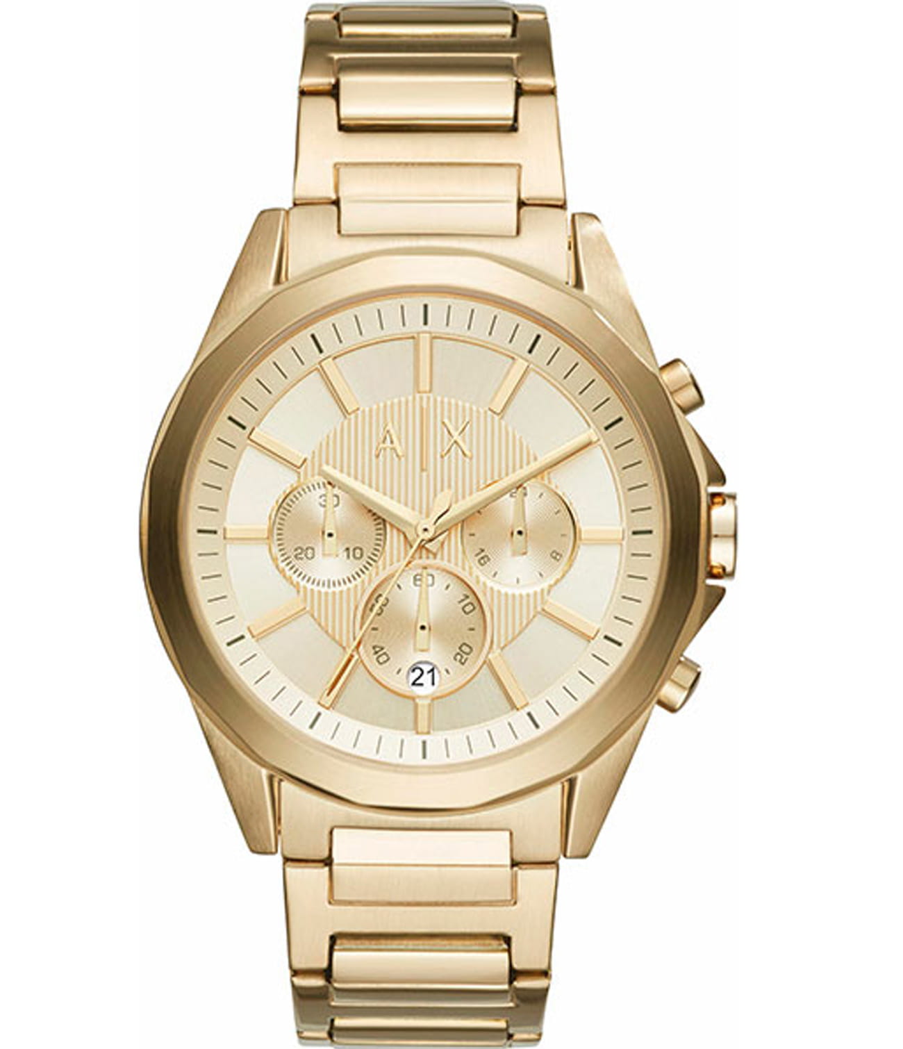 Американские мужские часы Armani Exchange Drexler AX2602, кварцевый механизм с высокой точностью. Класс водозащиты: 50 метров, позволит защитить корпус от случайных брызг или капель дождя. Корпус часов изготовлен из стали, золотистого цвета.