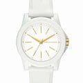 Женские наручные часы Armani Exchange AX7126 представляют собой изящный аксессуар, который идеально подходит для создания стильного образа в повседневной жизни. Модель выполнена с использованием современных материалов, где корпус изготовлен из нейлона и пластика, что делает её лёгкой и практичной в использовании. Защиту циферблата обеспечивает минеральное стеклоМинеральное стеклоМинеральное стекло представляет собой искусственно выращенный минерал кварца. Такое стекло отличается особой устойчивостью к повреждениям и царапинам. Уступает по некоторым качествам сапфировому стеклу., которое устойчиво к царапинам и сохраняет прозрачность на протяжении всего срока службы. Силиконовый ремешок белого цвета не только комфортен в ношении, но и сочетается с любым стилем одежды, а классическая застежка делает процесс надевания удобным и быстрым. Часы обладают водозащитой до 30 метров (3 атмосфер), что позволяет использовать их при контакте с водой во время мытья рук или хождения под дождём. Кварцевый механизм обеспечивает точность хода, делая эти часы надёжным спутником в любой ситуации.