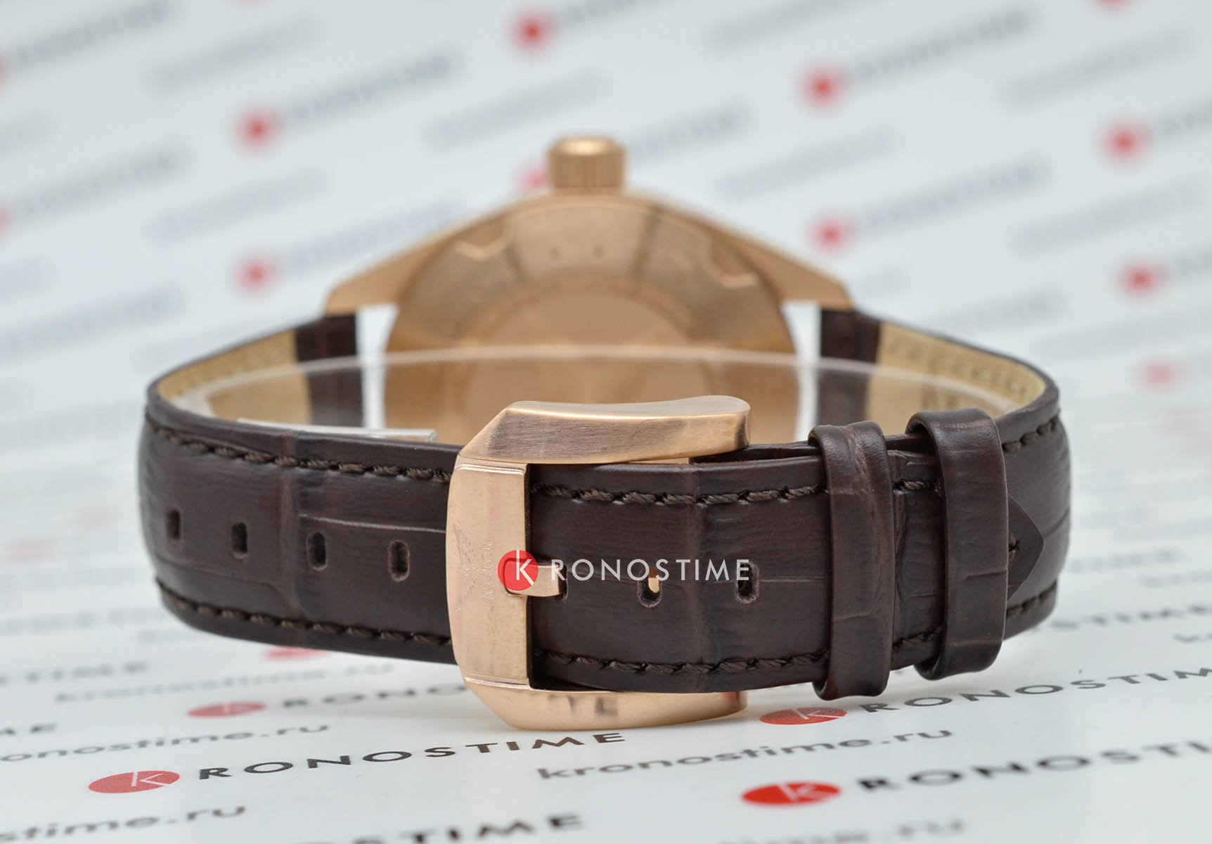 Матовый циферблат с крупными арабскими цифрами, широкими стрелками и контрастной шкалой минут обеспечивает точную и быструю считываемость информации — как и положено настоящим пилотским часам. У отметки «3 часа» — окошко даты. Часовые метки и стрелки покрыты люминесцентным покрытиемЛюминесцентное покрытиеПозволяет считывать показания времени в темноте. Производители наносят на стрелки, часовые индексы, безель или поверхность циферблата светонакопительный состав, дающий холодное свечение. Superluminova, позволяющим легко определять время даже в тёмное время суток.