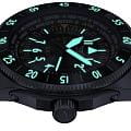 Циферблат отличается детальной функциональностью: в центре — крупные арабские цифры и стрелки, покрытые люминесцентным покрытиемЛюминесцентное покрытиеПозволяет считывать показания времени в темноте. Производители наносят на стрелки, часовые индексы, безель или поверхность циферблата светонакопительный состав, дающий холодное свечение., обеспечивающими мгновенное считывание времени даже в темноте. На «3 часах» — окошко даты, а индикатор второго часового пояса (GMT) удобно расположен на «9 часах». С внешней стороны — вращающийся безельБезельВнешний ободок, закрепляющий стекло. В спортивных часах так называется поворотное кольцо с делениями на циферблате, выполняет роль таймера – замеряет отрезки времени на шкале. Неподвижный безель – элемент декора. Однонаправленно вращающийся безель на дайверских часах позволяет фиксировать моменты погружения и выныривания на поверхность. с PVD-покрытиемPVDУльтратонкое покрытие наносится в технике вакуумного напыления, сочетает в себе нитрид титана особой прочности со слоем золота или оксида хрома. Несёт в себе декоративную или защитную функцию. с насечкой и градусной шкалой для секунд — идеален для расчёта времени пути или времени прибытия  .