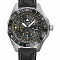 Циферблат защищён сапфировым стекломСапфировое стеклоПрочный и надёжный материал из кристалла сапфира синтетического происхождения, характеризующийся особой твёрдостью и устойчивостью к царапинам и повреждениям. с антибликовым покрытием, гарантирующим чёткий обзор без отражений. Сердцем модели является швейцарский кварцевый механизм Ronda 515.24D, который обеспечивает работу GMT, дату и высшую точность в диапазоне −10/+20 с/мес.  .