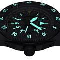 Циферблат отличается детальной функциональностью: в центре — крупные арабские цифры и стрелки, покрытые люминесцентным покрытиемЛюминесцентное покрытиеПозволяет считывать показания времени в темноте. Производители наносят на стрелки, часовые индексы, безель или поверхность циферблата светонакопительный состав, дающий холодное свечение., обеспечивающими мгновенное считывание времени даже в темноте. На «3 часах» — окошко даты, а индикатор второго часового пояса (GMT) удобно расположен на «9 часах». С внешней стороны — вращающийся безельБезельВнешний ободок, закрепляющий стекло. В спортивных часах так называется поворотное кольцо с делениями на циферблате, выполняет роль таймера – замеряет отрезки времени на шкале. Неподвижный безель – элемент декора. Однонаправленно вращающийся безель на дайверских часах позволяет фиксировать моменты погружения и выныривания на поверхность. с PVD-покрытиемPVDУльтратонкое покрытие наносится в технике вакуумного напыления, сочетает в себе нитрид титана особой прочности со слоем золота или оксида хрома. Несёт в себе декоративную или защитную функцию. с насечкой и градусной шкалой для секунд — идеален для расчёта времени пути или времени прибытия .