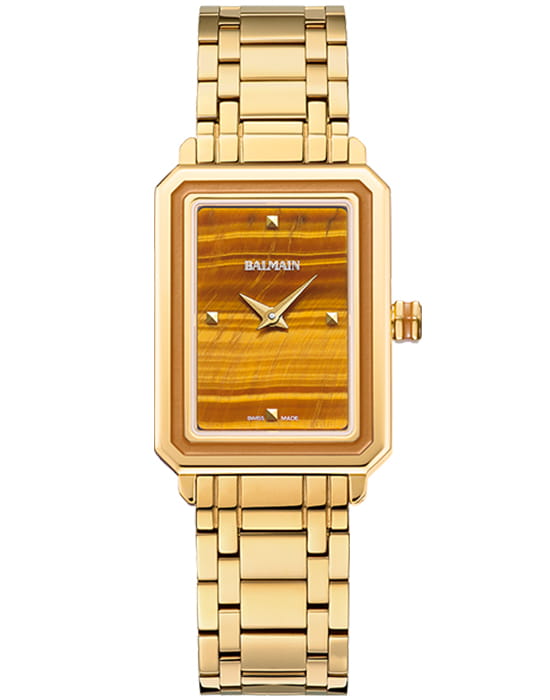 Женские часы Balmain Eirini B4390.33.56 кварцевый механизм с высокой точностью. Сапфировое стеклоСапфировое стеклоПрочный и надёжный материал из кристалла сапфира синтетического происхождения, характеризующийся особой твёрдостью и устойчивостью к царапинам и повреждениям. устойчивое к появлению царапин, обладающее высокой прозрачностью. Корпус изготовлен из нержавеющей стали с PVD-покрытиемPVDУльтратонкое покрытие наносится в технике вакуумного напыления, сочетает в себе нитрид титана особой прочности со слоем золота или оксида хрома. Несёт в себе декоративную или защитную функцию.. Класс водозащиты: 30 метров, позволит защитить корпус от случайных брызг или капель дождя. Стальной браслет на застёжке «бабочка» с кнопкамиЗастёжка "бабочка"Такой вид застёжки дополняется предохранителями, помогающими избежать случайного раскрытия браслета. Обладают изящным исполнением. с PVD-покрытиемPVDУльтратонкое покрытие наносится в технике вакуумного напыления, сочетает в себе нитрид титана особой прочности со слоем золота или оксида хрома. Несёт в себе декоративную или защитную функцию..