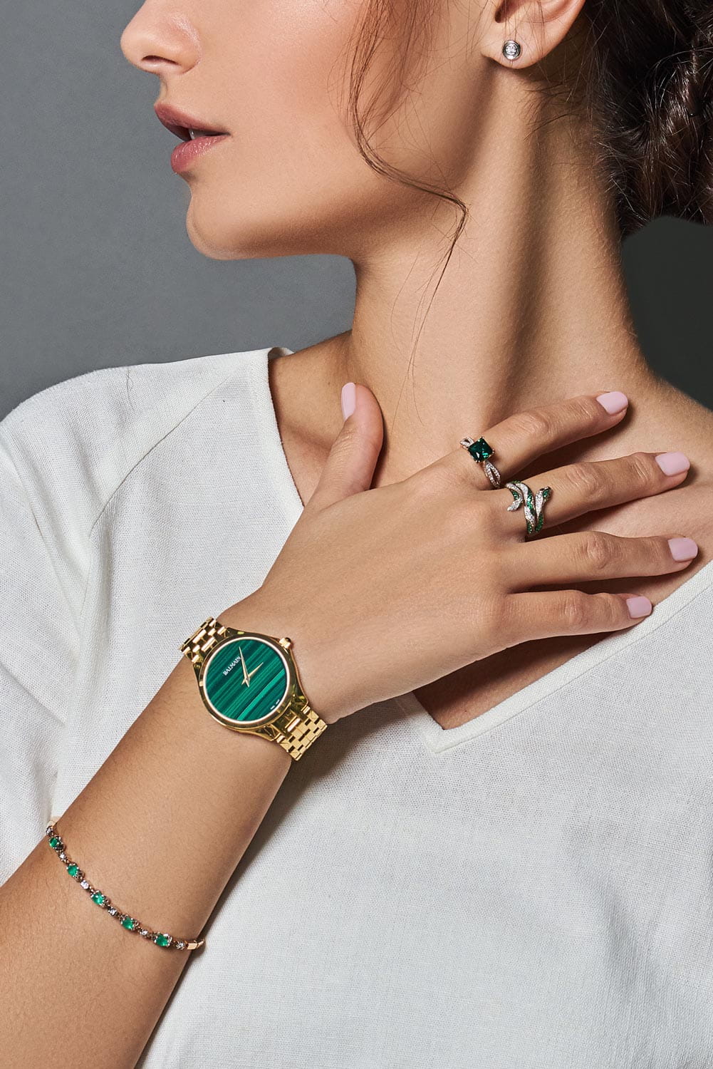 Женские часы Balmain Flamea B4790.33.75 кварцевый механизм с высокой точностью. Сапфировое стеклоСапфировое стеклоПрочный и надёжный материал из кристалла сапфира синтетического происхождения, характеризующийся особой твёрдостью и устойчивостью к царапинам и повреждениям. устойчивое к появлению царапин, обладающее высокой прозрачностью. Корпус изготовлен из нержавеющей стали PVD-покрытиемPVDУльтратонкое покрытие наносится в технике вакуумного напыления, сочетает в себе нитрид титана особой прочности со слоем золота или оксида хрома. Несёт в себе декоративную или защитную функцию.. Класс водозащиты: 50 метров, позволит защитить корпус от случайных брызг или капель дождя. Стальной браслет с PVD-покрытиемPVDУльтратонкое покрытие наносится в технике вакуумного напыления, сочетает в себе нитрид титана особой прочности со слоем золота или оксида хрома. Несёт в себе декоративную или защитную функцию.. на застёжке «бабочка» с кнопкамиЗастёжка "бабочка"Такой вид застёжки дополняется предохранителями, помогающими избежать случайного раскрытия браслета. Обладают изящным исполнением. . БезельБезельВнешний ободок, закрепляющий стекло. В спортивных часах так называется поворотное кольцо с делениями на циферблате, выполняет роль таймера – замеряет отрезки времени на шкале. Неподвижный безель – элемент декора. Однонаправленно вращающийся безель на дайверских часах позволяет фиксировать моменты погружения и выныривания на поверхность. с PVD-покрытиемPVDУльтратонкое покрытие наносится в технике вакуумного напыления, сочетает в себе нитрид титана особой прочности со слоем золота или оксида хрома. Несёт в себе декоративную или защитную функцию..