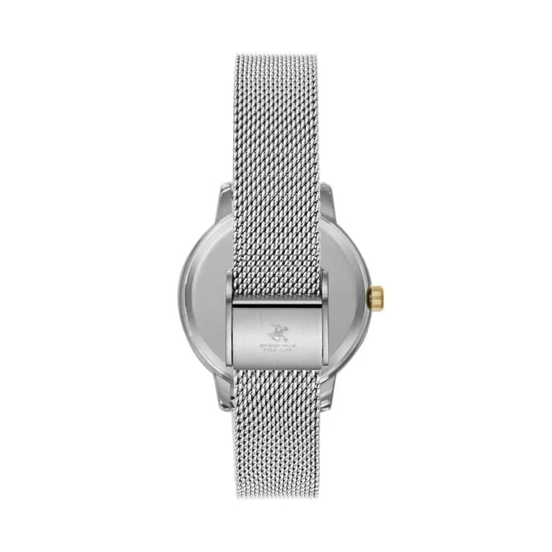 Часы Beverly Hills Polo Club BP3734C.220 — это гармоничное сочетание силы, стиля и современных технологий. Выполненные из высококачественной нержавеющей стали, минеральное стеклоМинеральное стеклоМинеральное стекло представляет собой искусственно выращенный минерал кварца. Такое стекло отличается особой устойчивостью к повреждениям и царапинам. Уступает по некоторым качествам сапфировому стеклу., защищающее циферблат, надёжно оберегает его от царапин, сохраняя яркий блеск и украшен бриллиантом. Класс водозащиты 50 метров, позволит защитить корпус от случайных брызг или капель дождя. Стальной браслет миланского плетения на раскладном замкеРаскладной замокДанный вариант застежки используется только на часах с металлическим браслетом. Отличительная особенность такого крепления в том, что длина браслета становится универсальной и вы можете самостоятельно отрегулировать нужный вам размер – застежка просто двигается по браслету часов.. БезельБезельВнешний ободок, закрепляющий стекло. В спортивных часах так называется поворотное кольцо с делениями на циферблате, выполняет роль таймера – замеряет отрезки времени на шкале. Неподвижный безель – элемент декора. Однонаправленно вращающийся безель на дайверских часах позволяет фиксировать моменты погружения и выныривания на поверхность. с PVD-покрытиемPVDУльтратонкое покрытие наносится в технике вакуумного напыления, сочетает в себе нитрид титана особой прочности со слоем золота или оксида хрома. Несёт в себе декоративную или защитную функцию.. Эта модель — истинное воплощение философии Beverly Hills Polo Club: сочетание высоких стандартов качества и неподражаемого стиля, создающее аксессуар, который станет вашим верным компаньоном в повседневной жизни.