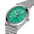 Женские швейцарские часы Breitling Chronomat Automatic 36 Victoria Beckham A103801A1L1A1 с надёжным автоматическим механизмом, выпущенные лимитированной серией всего из 1500 экземпляров в сотрудничестве с модным домом Victoria Beckham. Сапфировое стеклоСапфировое стеклоПрочный и надёжный материал из кристалла сапфира синтетического происхождения, характеризующийся особой твёрдостью и устойчивостью к царапинам и повреждениям. устойчивое к мелким механическим повреждениям. Корпус и браслет часов изготовлены из нержавеющей стали. Стальной браслет на застёжке-бабочке с кнопкамиЗастёжка "бабочка"Такой вид застёжки дополняется предохранителями, помогающими избежать случайного раскрытия браслета. Обладают изящным исполнением. . Стрелки и метки с люминесцентным покрытиемЛюминесцентное покрытиеПозволяет считывать показания времени в темноте. Производители наносят на стрелки, часовые индексы, безель или поверхность циферблата светонакопительный состав, дающий холодное свечение.. Класс водозащиты: 100 метров, позволит плавать, нырять и заниматься другими водными видами спорта. Окошко даты находится в положении 6 часов.