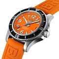 Класс водозащиты: 200 метров, позволит плавать, нырять и заниматься другими водными видами спорта. Корпус часов изготовлен из нержавеющей стали, серебристого цвета. Оранжевый каучуковый ремешок с классической застежкой из нержавеющей стали.