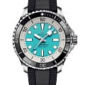 Мужские водонепроницаемые швейцарские часы Breitling Superocean Automatic 44 A17376211L2S1, механический механизм (автоматический калибр) с высокой точностью. Сапфировое стеклоСапфировое стеклоПрочный и надёжный материал из кристалла сапфира синтетического происхождения, характеризующийся особой твёрдостью и устойчивостью к царапинам и повреждениям. устойчивое к появлению царапин, обладающее высокой прозрачностью. Класс водозащиты: 300 метров, позволит плавать, нырять и заниматься другими водными видами спорта. Корпус часов изготовлен из стали. Силиконовый ремешок с раскладной застёжкойРаскладная застёжкаТакой тип застёжки используется только на браслетах из металла. Она никогда не раскрывается полностью, происходит разделение на 2 и более частей. Раскладывающая застёжка снизит вероятность потери часов к минимуму.. Стрелки и метки с люминесцентным покрытиемЛюминесцентное покрытиеПозволяет считывать показания времени в темноте. Производители наносят на стрелки, часовые индексы, безель или поверхность циферблата светонакопительный состав, дающий холодное свечение.. Широкие стрелки и индексы с люминесцентным покрытиемЛюминесцентное покрытиеПозволяет считывать показания времени в темноте. Производители наносят на стрелки, часовые индексы, безель или поверхность циферблата светонакопительный состав, дающий холодное свечение. обеспечивают легкую читаемость под водой. Этот специальный онлайн-эксклюзив Breitling отличается привлекательным голубым циферблатом. БезельБезельВнешний ободок, закрепляющий стекло. В спортивных часах так называется поворотное кольцо с делениями на циферблате, выполняет роль таймера – замеряет отрезки времени на шкале. Неподвижный безель – элемент декора. Однонаправленно вращающийся безель на дайверских часах позволяет фиксировать моменты погружения и выныривания на поверхность. из стали с керамической инкрустацией, защищенный от царапин, никогда не изнашивается и не выцветает. Лучше всего то, что это больше не просто часы для дайвинга — занимайтесь с ними серфингом, плавайте с ними, заходите с ними в пляжный бар, а затем надевайте их на ужин. Superocean идеально сочетает ностальгию по своему наследию со свежим внешним видом.