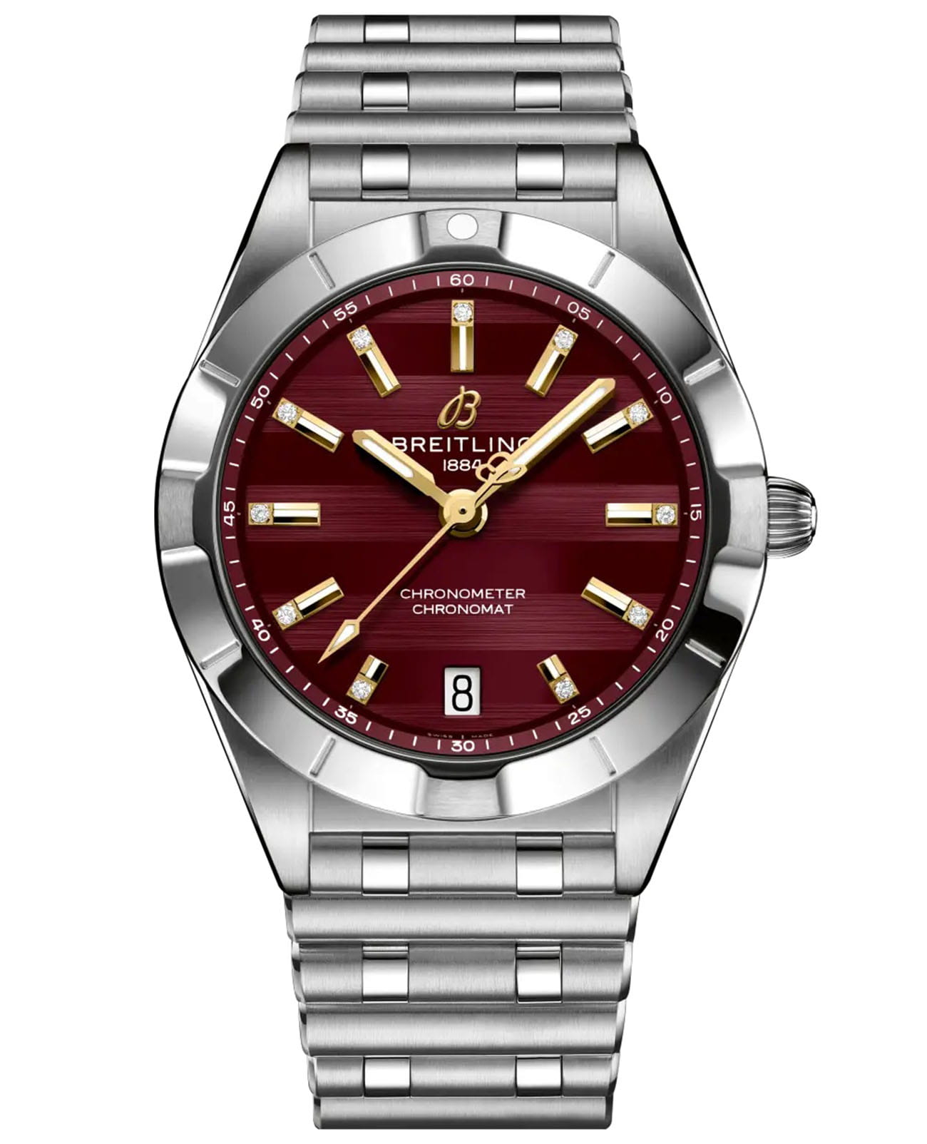 Женские кварцевые часы Breitling Chronomat 32 A773108A1K1A1 — это изысканный аксессуар, сочетающий в себе классический дизайн и современные технологии. Модель выполнена из нержавеющей стали с диаметром корпуса 32 мм и толщиной 8,54 мм, что делает её утончённой и лаконичной. Циферблат бордового цвета дополнен 11 бриллиантами круглой огранки, придающими модели роскошный внешний вид. Защиту механизма обеспечивает сапфировое стеклоСапфировое стеклоПрочный и надёжный материал из кристалла сапфира синтетического происхождения, характеризующийся особой твёрдостью и устойчивостью к царапинам и повреждениям. с антибликовым покрытиемАнтибликовое покрытиеСлой оксида металла в 0,13-0,3 микрон, благодаря которому стекло часов не бликует и не отражает свет. Антибликовое покрытие уменьшает отражение света в 10 раз, обеспечивая отличную читаемость показателей циферблата., устойчивым к повреждениям. Браслет из нержавеющей стали оснащён застёжкой «бабочка» с кнопкамиЗастёжка "бабочка"Такой вид застёжки дополняется предохранителями, помогающими избежать случайного раскрытия браслета. Обладают изящным исполнением. , обеспечивающей комфорт и надёжную фиксацию на запястье. Часы оснащены кварцевым механизмом Breitling 77, обеспечивающим точную работу и минимальное обслуживание. Водонепроницаемость позволяет использовать модель при плавании и других водных активностях без глубокого погружения. На задней крышке выгравирован логотип спортивной команды, которой посвящена модель, и надпись «Один из 75». Это лимитированная серия, выпущенная всего 75 экземпляров, что подчёркивает её уникальность. Гарантия 2 года подтверждает качество и долговечность изделия. Эти часы станут универсальным аксессуаром для тех, кто ценит сочетание стиля, функциональности и швейцарского мастерства — идеальный выбор для повседневной носки и торжественных случаев.