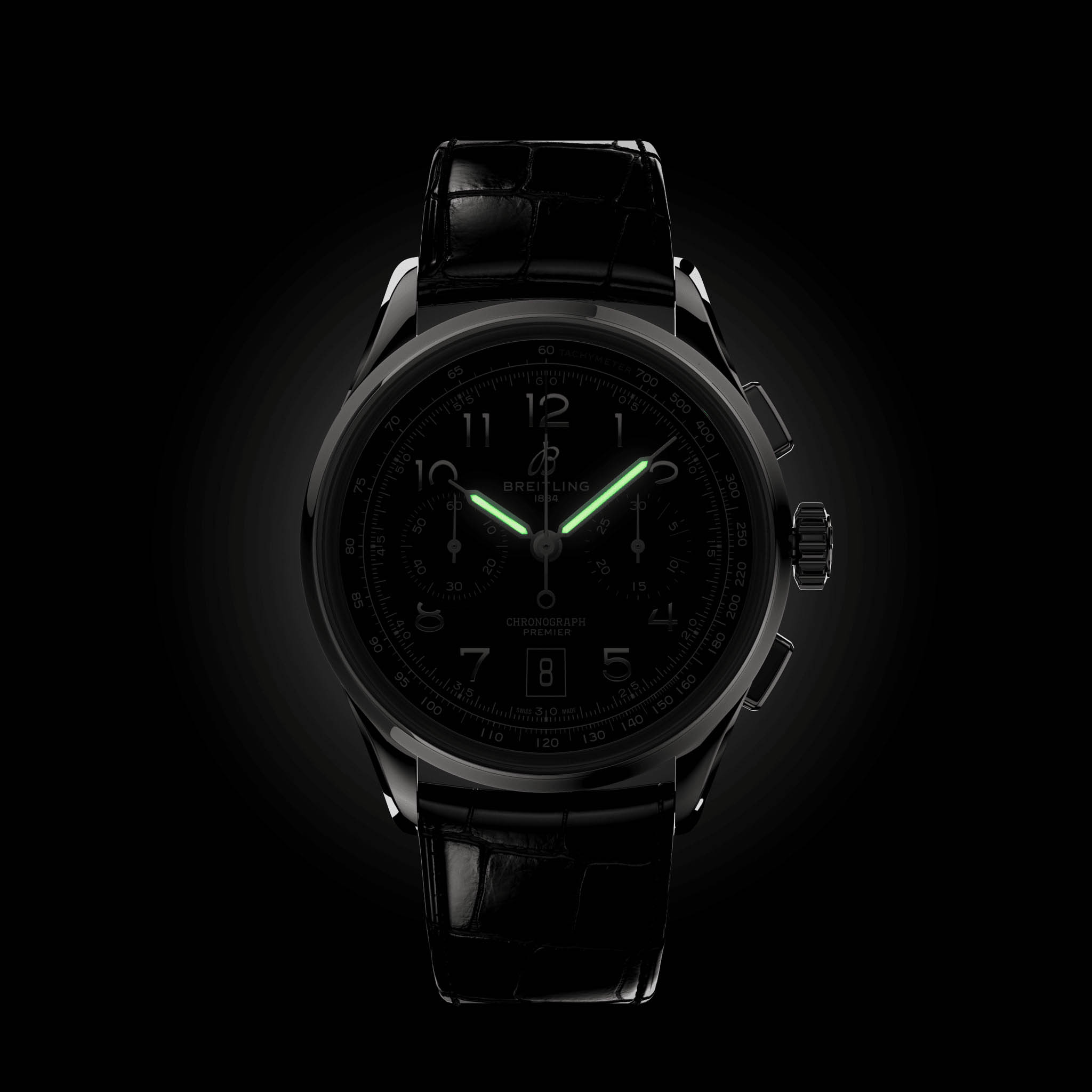 Мужские швейцарские часы-хронографХронографФункция позволяет измерять отрезки времени с особой точностью: часы, минуты, секунды. Верным признаком хронографа является наличие на циферблате 3 дополнительных окошек-счётчиков. с тахиметромТахиметрРазмеченная шкала, располагается на ободке или безеле часов. Тахиметр позволяет рассчитать скорость на определённом участке пути, расстояние измеряется в километрах или милях. Breitling Premier B01 Chronograph 42 AB0145221B1P1, механический механизм (автоматический калибр) с высокой точностью. Сапфировое стеклоСапфировое стеклоПрочный и надёжный материал из кристалла сапфира синтетического происхождения, характеризующийся особой твёрдостью и устойчивостью к царапинам и повреждениям. с антибликовым покрытием устойчивое к появлению царапин, обладающее высокой прозрачностью. Класс водозащиты: 100 метров, позволит плавать, нырять и заниматься другими водными видами спорта. Корпус часов изготовлен из стали. Кожаный крокодиловый ремешок с раскладной застёжкойРаскладная застёжкаТакой тип застёжки используется только на браслетах из металла. Она никогда не раскрывается полностью, происходит разделение на 2 и более частей. Раскладывающая застёжка снизит вероятность потери часов к минимуму.. Стрелки с люминесцентным покрытиемЛюминесцентное покрытиеПозволяет считывать показания времени в темноте. Производители наносят на стрелки, часовые индексы, безель или поверхность циферблата светонакопительный состав, дающий холодное свечение.. Окошко даты находится в положении 6 часов. СекундомерСекундомерСекундоме́р — прибор, способный измерять интервалы времени с точностью до долей секунды..