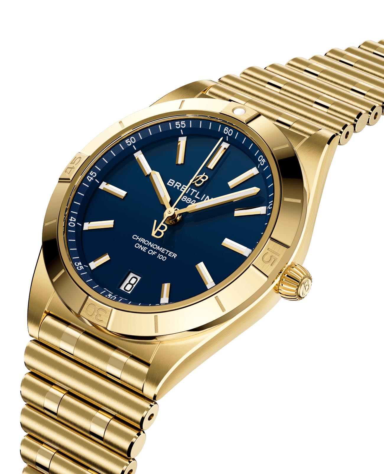 Женские швейцарские часы Breitling Chronomat Automatic 36 Victoria Beckham K103801A1C1K1 с надёжным автоматическим механизмом, выпущенные лимитированной серией всего из 1500 экземпляров в сотрудничестве с модным домом Victoria Beckham. Сапфировое стеклоСапфировое стеклоПрочный и надёжный материал из кристалла сапфира синтетического происхождения, характеризующийся особой твёрдостью и устойчивостью к царапинам и повреждениям. устойчивое к мелким механическим повреждениям. Корпус и браслет часов изготовлены из желтого 18-каратного золота18-каратное золотоОбозначение по каратной системе пробирования, оно показывает, сколько драгоценного металла содержится в изделии. 18 карат - в составе 75% чистого золота, соответствует 750 пробе.