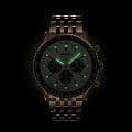 . Шкала тахиметраТахиметрРазмеченная шкала, располагается на ободке или безеле часов. Тахиметр позволяет рассчитать скорость на определённом участке пути, расстояние измеряется в километрах или милях. на циферблате. Часы имеют сертификат COSCСертификат COSCОфициальный сертификат, подтверждающий то, что часы ходят с особо высокой точностью. Для получения документа часы подвергаются тестовым испытаниям, разработанным швейцарским институтом тестирования хронометров COSC. Допустимая норма для механических часов -4/+6 секунд в день, для кварцевых моделей +/- 0,07 секунд в день.. Окошко даты находится в положении 6 часов. Стрелки и метки с люминесцентным покрытиемЛюминесцентное покрытиеПозволяет считывать показания времени в темноте. Производители наносят на стрелки, часовые индексы, безель или поверхность циферблата светонакопительный состав, дающий холодное свечение..