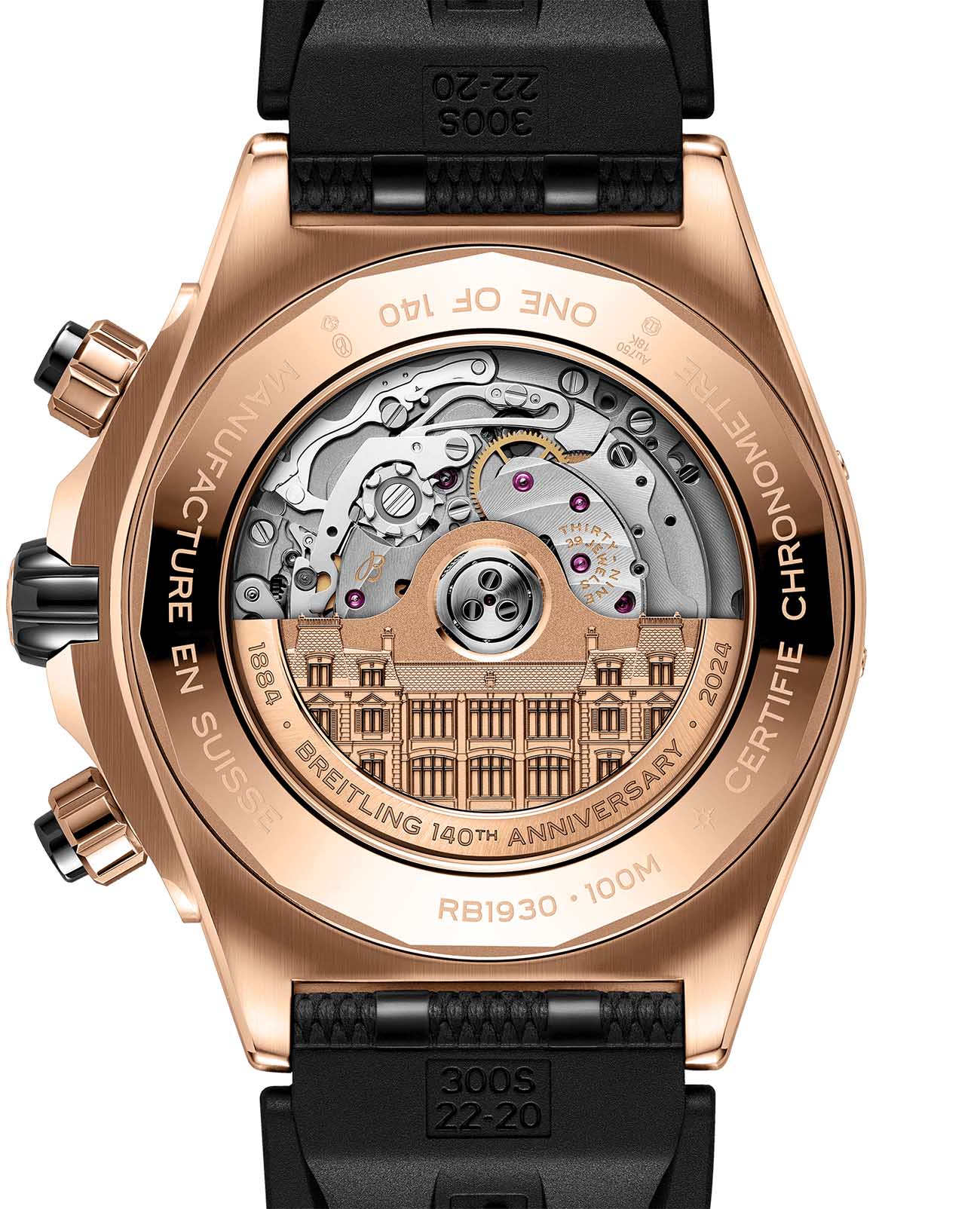 Мужские швейцарские часы-хронограф с секундомером Breitling Super Chronomat B19 44 Perpetual Calendar 140th Anniversary RB19301A1G1S1, механический механизм (автоматический калибр) с высокой точностью. Сапфировое стеклоСапфировое стеклоПрочный и надёжный материал из кристалла сапфира синтетического происхождения, характеризующийся особой твёрдостью и устойчивостью к царапинам и повреждениям. устойчивое к появлению царапин, обладающее высокой прозрачностью. Класс водозащиты: 100 метров, позволит плавать, нырять и заниматься другими водными видами спорта. Корпус часов изготовлен из нержавеющей стали и 18-каратного золота18-каратное золотоОбозначение по каратной системе пробирования, оно показывает, сколько драгоценного металла содержится в изделии. 18 карат - в составе 75% чистого золота, соответствует 750 пробе.