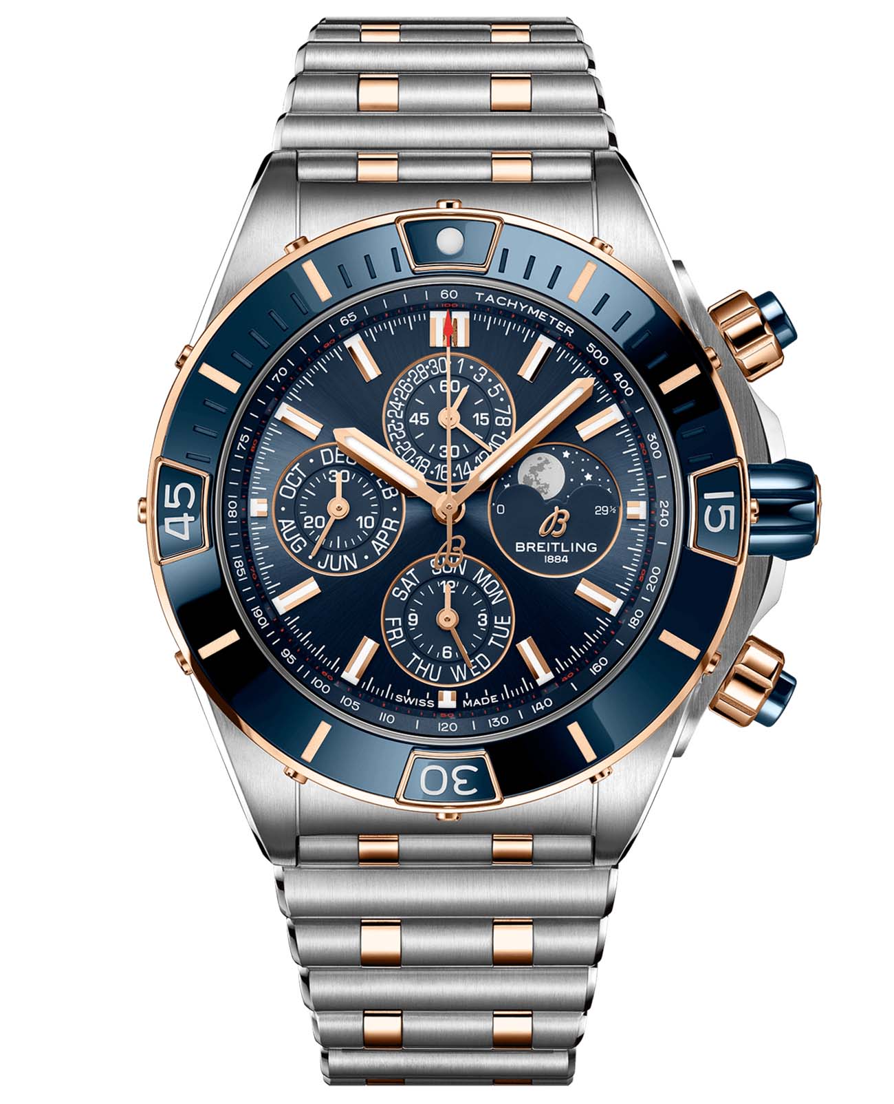 Образ завершают культовый браслет в стиле Rouleaux с раскладной застежкой. В корпусе часов Super Chronomat 44 Four-Year Calendar спрятан мануфактурный калибр Breitling 19, сертифицированный Швейцарским институтом официального тестирования хронометров (COSC). Модель оснащена механизмом календаря, который необходимо корректировать один раз в четыре года, или раз в 1461 день – каждый високосный год.