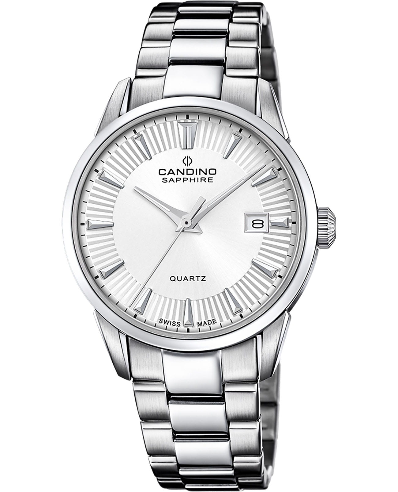 Мужские часы Candino C4711/E — это классический швейцарский дизайн и надёжность. Корпус круглой формы выполнен из нержавеющей стали и защищён сапфировым стекломСапфировое стеклоПрочный и надёжный материал из кристалла сапфира синтетического происхождения, характеризующийся особой твёрдостью и устойчивостью к царапинам и повреждениям., устойчивым к царапинам. Циферблат серебристого цвета сочетается с браслетом из нержавеющей стали, который фиксируется на застёжке «бабочка» с кнопкамиЗастёжка "бабочка"Такой вид застёжки дополняется предохранителями, помогающими избежать случайного раскрытия браслета. Обладают изящным исполнением. . Водонепроницаемость составляет 100 WR, что позволяет использовать часы для плавания, ныряния и других водных видов спорта. Модель отличается лаконичным стилем, высокой прочностью и идеально подходит для повседневного и делового образа.
