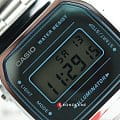 Серебристая цветовая гамма подойдёт к любой одежде, предоставляя простор для экспериментов. Цифровой дисплей в голубом цвете оснащён функцией подсветки, облегчающей считывание информации в темноте. Среди дополнительных возможностей числятся будильник, календарь, секундомер. Ударопрочный корпус сделан из полимерного пластика. Минеральное стекло отличается устойчивостью к появлению царапин. Габариты: 38,6 x 36,3 x 9,6 мм.