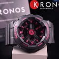 Розовые элементы гармонируют с контрастным чёрным циферблатом, прослеживается дизайн в уличном стиле. Привлекательно смотрятся оригинальные стрелки. Противоударный корпусУдаропрочный корпусМеханизм заключён в корпус, выполненный из современных материалов, устойчивых к ударам, механическим повреждениям и падению с высоты: инновационный пластик, карбон, нержавеющая сталь, титан. защищает японский кварцевый калибр от последствий падения, ударов, вибрации. Механизм работает от батарейки, рассчитанной на 2-летний срок. Закаленное минеральное стекло. Светодиодная подсветкаСветодиодная подсветкаСветодиодная или LED-подсветка обеспечивает появление яркого холодного свечения за счёт LED-элементов - маленьких лампочек. Они потребляют минимальное количество энергии, чаще всего можно встретить 1 светодиод, в нижней части циферблата. циферблата. Водостойкость 100 метров. Полимерный ремешок в качестве амортизатора. Будильник, мировое времяМировое время Полезное часовое усложнение, отображающее время в основных городах и известных областях по всему миру, оно связано с часовыми поясами, удобно для путешественников и бизнесменов. , таймер, хронографХронографФункция позволяет измерять отрезки времени с особой точностью: часы, минуты, секунды. Верным признаком хронографа является наличие на циферблате 3 дополнительных окошек-счётчиков., секундомер, вечный календарьВечный календарьКлассическое часовое усложнение, представляющее собой календарь, рассчитанный на несколько лет вперёд (стандартно – до 2099 года). Определяет текущую дату, день недели, месяц.. Габариты: 46,3 x 43,4 x 15,8 мм.