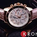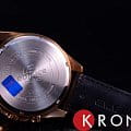 Оригинальный циферблат и чёрный безельБезельВнешний ободок, закрепляющий стекло. В спортивных часах так называется поворотное кольцо с делениями на циферблате, выполняет роль таймера – замеряет отрезки времени на шкале. Неподвижный безель – элемент декора. Однонаправленно вращающийся безель на дайверских часах позволяет фиксировать моменты погружения и выныривания на поверхность. превосходно сочетаются с золотистыми переливами ударопрочного корпусаУдаропрочный корпусМеханизм заключён в корпус, выполненный из современных материалов, устойчивых к ударам, механическим повреждениям и падению с высоты: инновационный пластик, карбон, нержавеющая сталь, титан. с защитным IP-покрытиемIP-покрытиеМетод ионного напыления. Демонстрирует повышенную устойчивость к истиранию, окислению и химическим веществам. Под воздействием высокого давления и температуры около 1500°C молекулы металла надёжно соединяются с частицами корпуса часов.. Приметный аксессуар отлично дополнит брендовый деловой костюм. Работу часов обеспечивает японский кварцевый калибр Miyota с точностью хода +/- 30 секунд в месяц. Батарейка характеризуется 3-летним сроком службы. Коричневый ремешок из натуральной кожи с тиснением под кожу крокодила. Люминесцентная подсветкаЛюминесцентное покрытиеПозволяет считывать показания времени в темноте. Производители наносят на стрелки, часовые индексы, безель или поверхность циферблата светонакопительный состав, дающий холодное свечение.. Закручивающаяся задняя крышка. Заводная головка с системой защиты. Закаленное минеральное стекло. Водонепроницаемость при давлении до 10 бар. ХронографХронографФункция позволяет измерять отрезки времени с особой точностью: часы, минуты, секунды. Верным признаком хронографа является наличие на циферблате 3 дополнительных окошек-счётчиков., секундомер, индикация числа. Габариты: 53 x 47 x 12,3 мм.