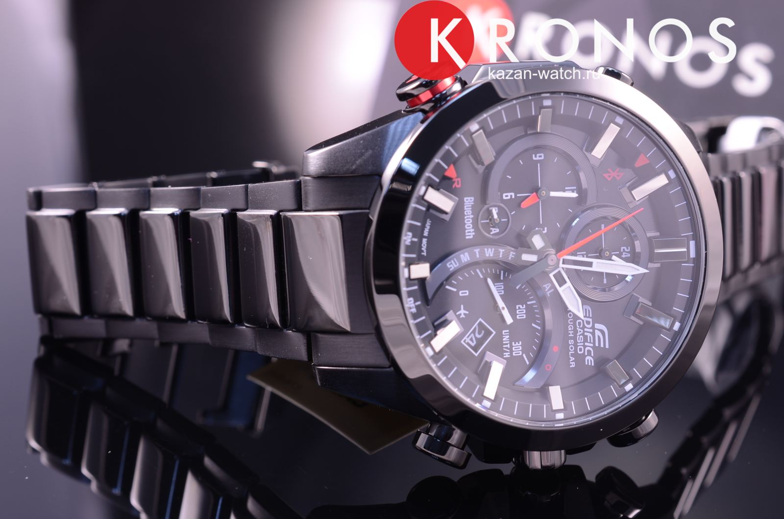 Стильный представитель автомобильной серии станет идеальным аксессуаром для ежедневного ношения. На чёрном фоне ярко выделяются красные элементы, придавая более динамичный характер. Наручные часы показывают действительно точное время благодаря технологии Bluetooth 4.0BluetoothСовременная технология, позволяющая синхронизировать часы с телефоном и переносить данные. Часы с Bluetooth расширяют возможности вашего смартфона и делают его использование ещё более удобным., модель корректирует показатели с помощью синхронизации с интернет-сервером точного времени. Японский кварцевый механизм получает питание за счёт солнечной батареи, реализуется технология . Минеральное стекло. Ударопрочный корпусУдаропрочный корпусМеханизм заключён в корпус, выполненный из современных материалов, устойчивых к ударам, механическим повреждениям и падению с высоты: инновационный пластик, карбон, нержавеющая сталь, титан. и браслет из нержавеющей стали 316L с IP-покрытиемIP-покрытиеМетод ионного напыления. Демонстрирует повышенную устойчивость к истиранию, окислению и химическим веществам. Под воздействием высокого давления и температуры около 1500°C молекулы металла надёжно соединяются с частицами корпуса часов.. Возможность включить авиарежим. Заводная головка с системой защиты. Люминесцентная подсветкаЛюминесцентное покрытиеПозволяет считывать показания времени в темноте. Производители наносят на стрелки, часовые индексы, безель или поверхность циферблата светонакопительный состав, дающий холодное свечение.. Водонепроницаемость 10 бар. Отображение наличия поступивших сообщений электронной почты, будильник, секундомер, функция поиска телефона, хронографХронографФункция позволяет измерять отрезки времени с особой точностью: часы, минуты, секунды. Верным признаком хронографа является наличие на циферблате 3 дополнительных окошек-счётчиков., поиск телефона, отображение числа и дня недели, расчёт средней скорости пройденной дистанции. Габариты: 52 x 48,1 x 14,2 мм.