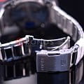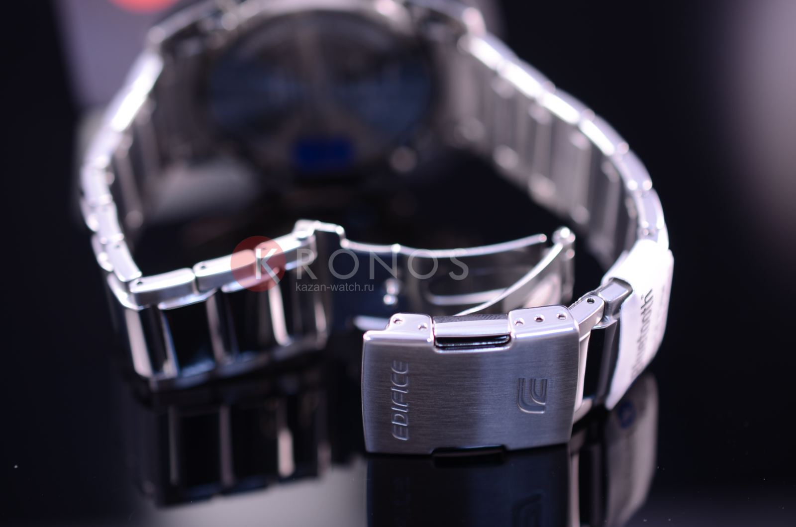 Стильные наручные часы с крупными элементами оформления будут выгодно смотреться в качестве дополнения для повседневного образа, динамики придают детали синего и голубого цвета. Часы обладают технологией Bluetooth 4.0BluetoothСовременная технология, позволяющая синхронизировать часы с телефоном и переносить данные. Часы с Bluetooth расширяют возможности вашего смартфона и делают его использование ещё более удобным. с низким потреблением энергии, данные передаются нажатием кнопки. Интерес представляет также наличие солнечной батареи , аккумулятор получает питание от солнечного света, обеспечивая автономную работу аксессуара. Индикатор заряда батареи позволяет следить за уровнем заряда батарейки. Минеральное стекло. Люминесцентная подсветка NeobriteПодсветка NeobriteИспользование светонакопительных составов на основе сульфида цинка или алюмината стронция, яркий свет можно наблюдать на протяжении 6-10 часов после «зарядки» часов около источника света.. Корпус и браслет из нержавеющей стали 316L. Заводная головка с системой защиты. БезельБезельВнешний ободок, закрепляющий стекло. В спортивных часах так называется поворотное кольцо с делениями на циферблате, выполняет роль таймера – замеряет отрезки времени на шкале. Неподвижный безель – элемент декора. Однонаправленно вращающийся безель на дайверских часах позволяет фиксировать моменты погружения и выныривания на поверхность. со шкалой тахиметраТахиметрРазмеченная шкала, располагается на ободке или безеле часов. Тахиметр позволяет рассчитать скорость на определённом участке пути, расстояние измеряется в километрах или милях.. Функции: поиск телефона, секундомер, хронографХронографФункция позволяет измерять отрезки времени с особой точностью: часы, минуты, секунды. Верным признаком хронографа является наличие на циферблате 3 дополнительных окошек-счётчиков., будильник, календарь, мировое времяМировое время Полезное часовое усложнение, отображающее время в основных городах и известных областях по всему миру, оно связано с часовыми поясами, удобно для путешественников и бизнесменов. . Водозащита 100 метров. Габариты: 53,5 x 49,2 x 13,1 мм.