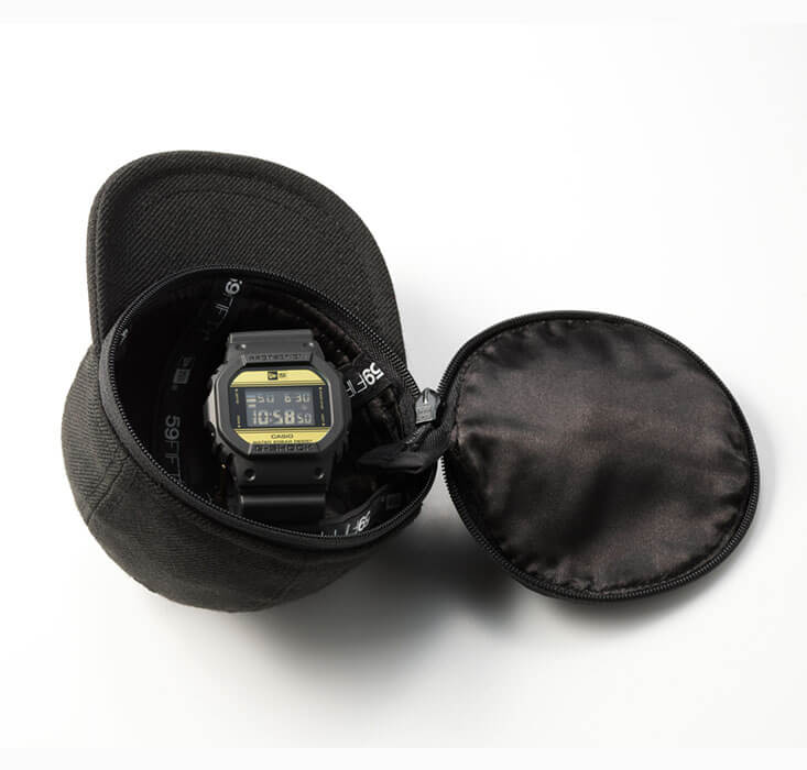 Fashion-коллаборация приурочена к 35-летнему юбилею G-Shock, узнаваемый олдскульный корпус гармонирует с золотистым зеркальным циферблатом. Эксклюзивная модель поставляется в оригинальной упаковке, сделанной в виде дизайнерской бейсболки 59FIFTY Fitted. Наручные часы станут идеальным подарком для ценителя необычного облика вещей. Работу японского кварцевого механизма обеспечивает батарейка, рассчитанная на 2 года службы. Противоударный корпусУдаропрочный корпусМеханизм заключён в корпус, выполненный из современных материалов, устойчивых к ударам, механическим повреждениям и падению с высоты: инновационный пластик, карбон, нержавеющая сталь, титан. из пластика устойчив к вибрации, падению, повреждениям. Электролюминесцентная подсветкаЭлектролюминесцентная подсветкаЭлектролюминесцентная панель устанавливается под ЖК-экраном часов, при нажатии кнопки электричество преобразуется в свет за счёт подачи напряжения на атомы фосфора, такой тип подсветки позволяет освещать весь циферблат. циферблата сине-зелёного цвета. Задняя крышка с гравировкой. Удобный полимерный ремешок. Минеральное стекло. Водостойкость до 20 бар. Функции: автоматический календарь до 2099 года, хронографХронографФункция позволяет измерять отрезки времени с особой точностью: часы, минуты, секунды. Верным признаком хронографа является наличие на циферблате 3 дополнительных окошек-счётчиков., будильник, секундомер с точностью в 1/100 секунды, таймер. Габариты: 48,9 x 42,8 x 13,4 мм.