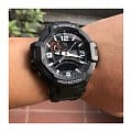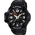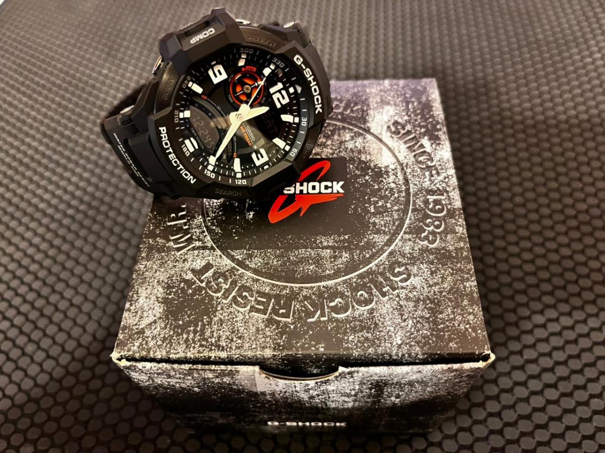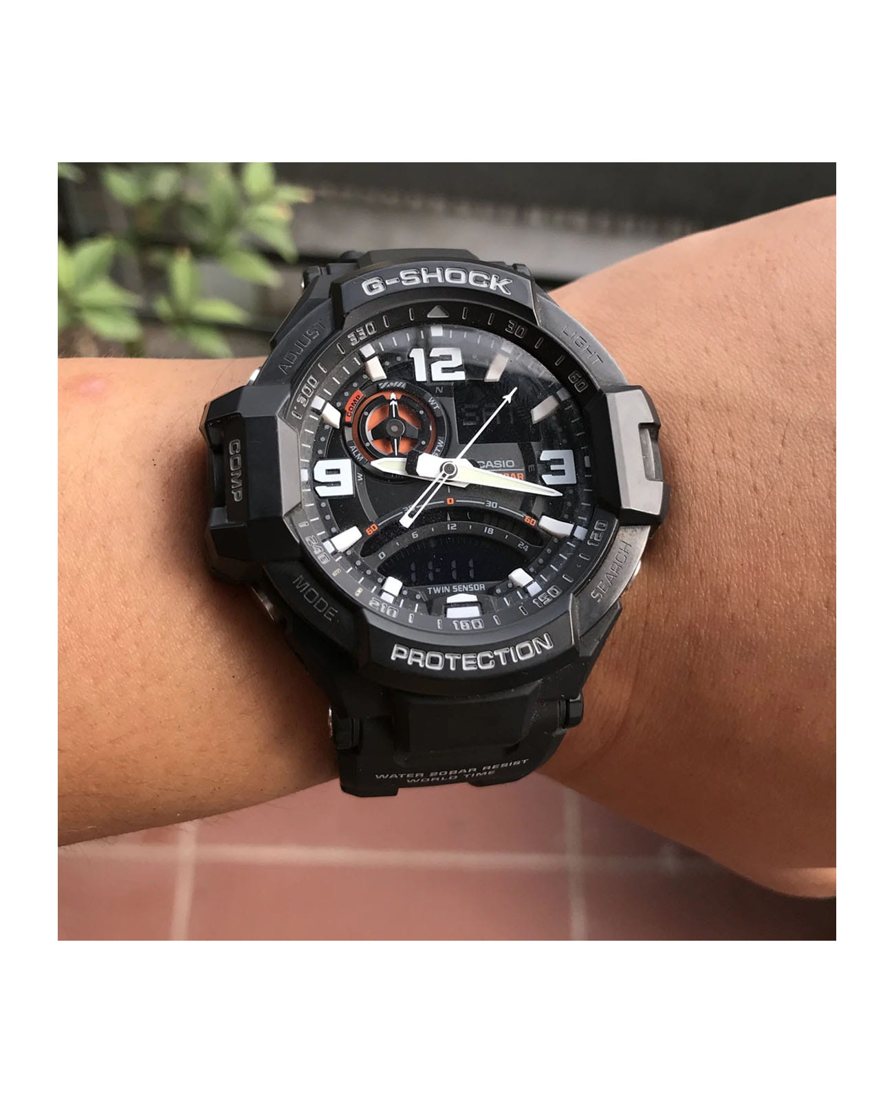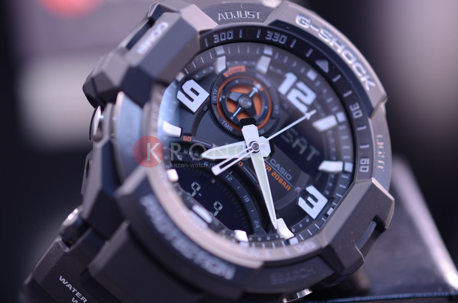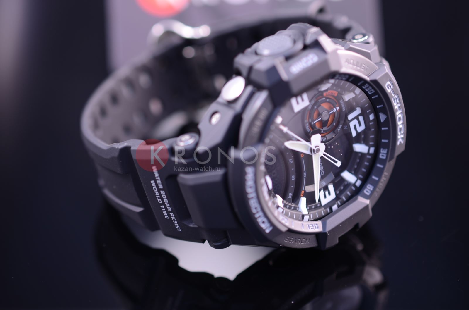 Японские мужские часы-хронографХронографФункция позволяет измерять отрезки времени с особой точностью: часы, минуты, секунды. Верным признаком хронографа является наличие на циферблате 3 дополнительных окошек-счётчиков. Casio G-Shock  G-SHOCK GA-1000-1A из коллекции G-Shock. Минеральное стеклоМинеральное стеклоМинеральное стекло представляет собой искусственно выращенный минерал кварца. Такое стекло отличается особой устойчивостью к повреждениям и царапинам. Уступает по некоторым качествам сапфировому стеклу. устойчивое к появлению царапин, обладающее высокой прозрачностью. Корпус часов изготовлен из полимерного материала. Светонакопительное покрытие NeobriteПодсветка NeobriteИспользование светонакопительных составов на основе сульфида цинка или алюмината стронция, яркий свет можно наблюдать на протяжении 6-10 часов после «зарядки» часов около источника света.. Циферблат подсвечивается подсветкой Neon IlluminatorNeon IlluminatorУникальная подсветка циферблата. На индексы наносятся специальные флуоресцентные чернила, которые подсвечиваются светодиодной подсветкой. ,  благодаря наличию функции задержки, после отпускания кнопки освещение горит еще несколько секунд. Ударопрочный корпусУдаропрочный корпусМеханизм заключён в корпус, выполненный из современных материалов, устойчивых к ударам, механическим повреждениям и падению с высоты: инновационный пластик, карбон, нержавеющая сталь, титан. защищает механизм от ударов и вибрации. Мировое времяМировое время Полезное часовое усложнение, отображающее время в основных городах и известных областях по всему миру, оно связано с часовыми поясами, удобно для путешественников и бизнесменов. – 48 городов (29 часовых поясов). СекундомерСекундомерСекундоме́р — прибор, способный измерять интервалы времени с точностью до долей секунды. с точностью измерения 1/100 секунды и измерением до 23 часов 59 минут 59,99 cек. ТаймерТаймерОтсчитывает секунды в обратном направлении в заданном интервале времени. обратного отсчета (диапазон времени 24 часа), автоматический календарь, 12/24 отображение времени, будильникБудильникБуди́льник — часы, в заданный момент времени подающие звуковой, световой и/или в редких случаях другой сигнал.. Встроенный цифровой компас. Диапазон измерения от 0° до 359° с точностью 1°. Коррекция магнитного склонения. Встроенный датчик температуры от -10° до +60 °. Батарейка рассчитана на 2 года. Стальная задняя крышка крепится на 4-х винтах. Класс водозащиты: 200 метров, позволит плавать, нырять и заниматься другими водными видами спорта. Ремешок из полимерного материала на стандартной застежке.