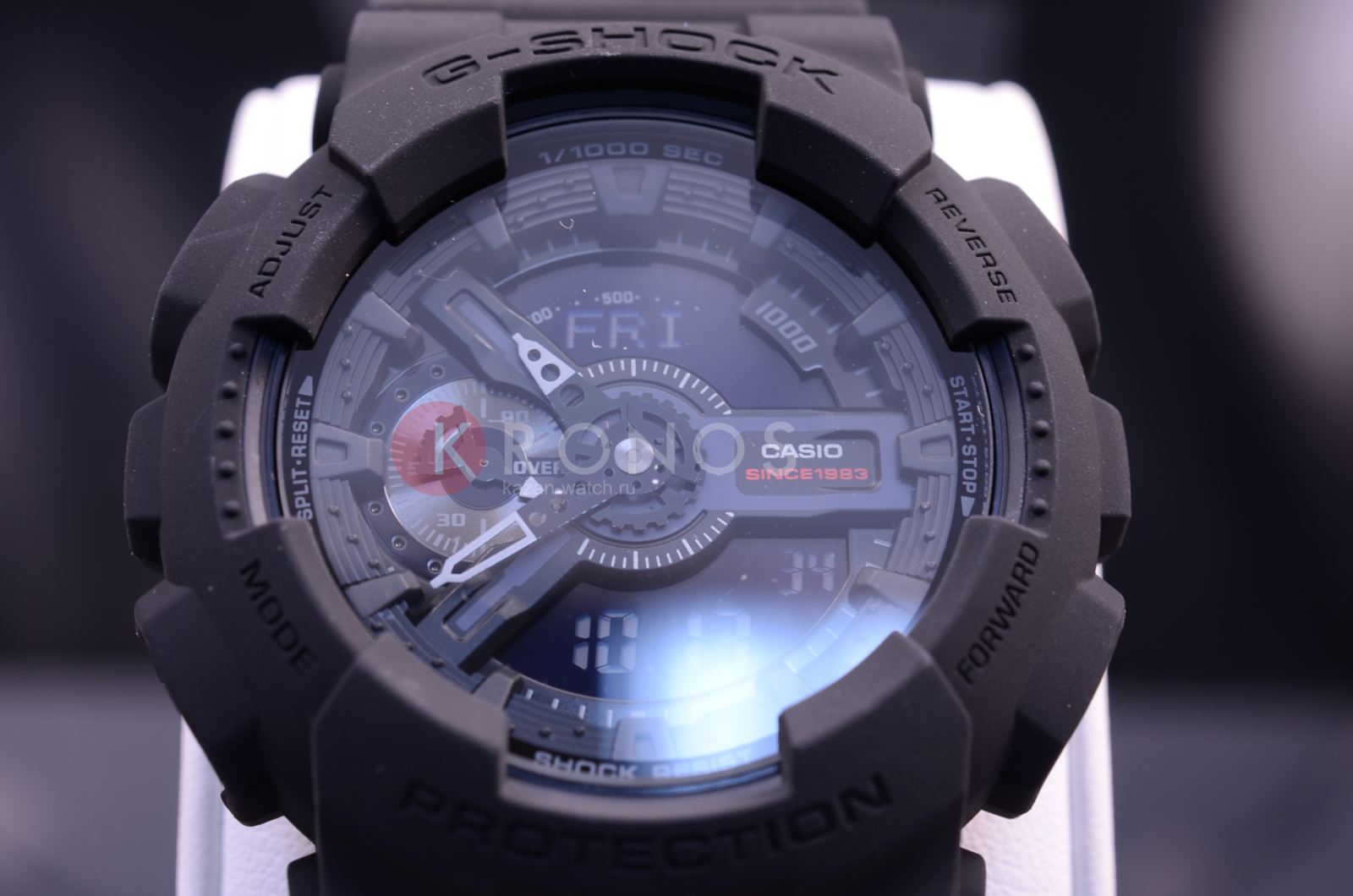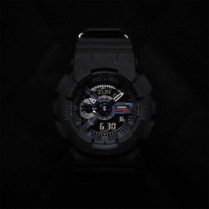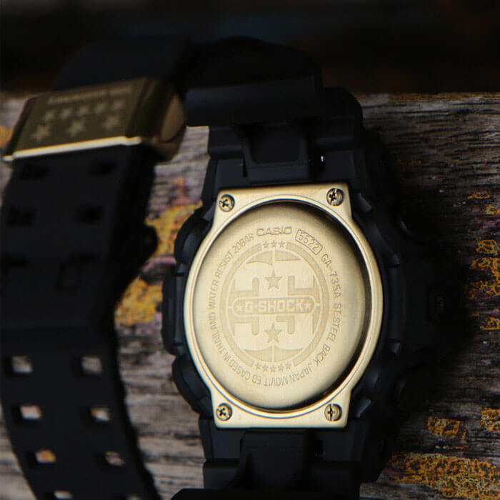 Лимитированная серия. Задняя крышка всех часов в коллекции украшена гравировкой с логотипом 35-й годовщины G-SHOCK, разработанным известным художником-графиком Эриком Хейзем (Eric Haze). На застежке размещена звездная эмблема, символизирующая цифру 35. Для каждых часов была подготовлена коллекционная коробка. Противоударный корпус защищает механизм от ударов и вибрации. Защищены от магнитных полей. Циферблат подсвечивается светодиодом, функция автоподсветки освещает циферблат при повороте часов к лицу. Мировое время – 48 городов (29 часовых поясов), всемирное координированное время (UTC). Автоматический переход на зимнее и летнее время, возможность включения/отключения данной функции. 12-ти и 24-х часовой формат времени. Секундомер с точностью показаний 1/1000с и временем измерения 100ч. Измерение скорости. Сплит-хронограф. Таймер обратного отсчета от 1мин до 24ч с автоповтором.