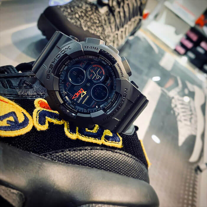 Противоударный корпусУдаропрочный корпусМеханизм заключён в корпус, выполненный из современных материалов, устойчивых к ударам, механическим повреждениям и падению с высоты: инновационный пластик, карбон, нержавеющая сталь, титан. модели позаимствован у серии GA-100, обновления коснулись циферблата и стрелок. Наручные часы представлены в минималистичном исполнении, но яркие элементы оформления делают их интереснее. Для изготовления аксессуара был выбран полимерный пластик, это способствует максимальной защите японского кварцевого механизма от ударов и вибрации. Точность хода +/- 15 секунд в месяц. Батарейка рассчитана на 2 года. Закаленное минеральное стекло. СветодиоднаяСветодиодная подсветкаСветодиодная или LED-подсветка обеспечивает появление яркого холодного свечения за счёт LED-элементов - маленьких лампочек. Они потребляют минимальное количество энергии, чаще всего можно встретить 1 светодиод, в нижней части циферблата. подсветка. Комфортный и гибкий ремешок. Отсутствие восприимчивости к магнитным полям. Водонепроницаемость 20 бар. Секундомер, средняя скорость пути, 5 будильников, хронографХронографФункция позволяет измерять отрезки времени с особой точностью: часы, минуты, секунды. Верным признаком хронографа является наличие на циферблате 3 дополнительных окошек-счётчиков., автоматический календарь, мировое времяМировое время Полезное часовое усложнение, отображающее время в основных городах и известных областях по всему миру, оно связано с часовыми поясами, удобно для путешественников и бизнесменов. , таймер. Габариты: 55 x 51,2 x 16,9 мм.