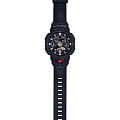 Наручные часы в чёрном цвете привлекают эффектным внешним видом, дизайн основан на стилистике уличных видов спорта. Круглый противоударный корпусУдаропрочный корпусМеханизм заключён в корпус, выполненный из современных материалов, устойчивых к ударам, механическим повреждениям и падению с высоты: инновационный пластик, карбон, нержавеющая сталь, титан. и объёмные стрелки имитируют колесо BMX-велосипеда или скейтборда. Удобством отличается функция секундомера, запустить который можно с помощью однократного нажатия большой кнопки под циферблатом. Японский кварцевый механизм. Аккумуляторная батарейка рассчитана на 3 года работы. Минеральное стекло. Циферблат с двойной светодиодной подсветкойСветодиодная подсветкаСветодиодная или LED-подсветка обеспечивает появление яркого холодного свечения за счёт LED-элементов - маленьких лампочек. Они потребляют минимальное количество энергии, чаще всего можно встретить 1 светодиод, в нижней части циферблата.. Водозащита 200 метров. Корпус и ремешок из полимерного материала. 12/24-отображение времени. Мировое времяМировое время Полезное часовое усложнение, отображающее время в основных городах и известных областях по всему миру, оно связано с часовыми поясами, удобно для путешественников и бизнесменов. - 31 часовой пояс, 5 будильников, таймер обратного отсчёта, UTCUTCВсемирное кординационное время, не имеющее привязки к географическому положению Гринвича, основывается на атомном отсчёте времени. Регулировка времени осуществляется более точно, чем устаревшее GMT.