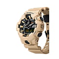 Аналого-цифровая модель в песочном исполнении идеально подойдёт для ношения в любой ситуации, гармонично смотрится контрастный циферблат с крупными элементами дизайна. Часы в стиле милитари из серии GA-700 обладают противоударным корпусомУдаропрочный корпусМеханизм заключён в корпус, выполненный из современных материалов, устойчивых к ударам, механическим повреждениям и падению с высоты: инновационный пластик, карбон, нержавеющая сталь, титан. из полимерного пластика, стойко переносящим любые механические повреждения. Батарейка рассчитана на 5 лет службы. Водонепроницаемость до 20 бар. Минеральное стекло устойчиво к появлению царапин. ЛюминесцентнаяЛюминесцентное покрытиеПозволяет считывать показания времени в темноте. Производители наносят на стрелки, часовые индексы, безель или поверхность циферблата светонакопительный состав, дающий холодное свечение. и светодиодная подсветкаСветодиодная подсветкаСветодиодная или LED-подсветка обеспечивает появление яркого холодного свечения за счёт LED-элементов - маленьких лампочек. Они потребляют минимальное количество энергии, чаще всего можно встретить 1 светодиод, в нижней части циферблата.. Дополнительные возможности: функция перемещения стрелок, включение и выключение звука кнопок, секундомер, мировое времяМировое время Полезное часовое усложнение, отображающее время в основных городах и известных областях по всему миру, оно связано с часовыми поясами, удобно для путешественников и бизнесменов. , таймер с автоповтором, UTCUTCВсемирное кординационное время, не имеющее привязки к географическому положению Гринвича, основывается на атомном отсчёте времени. Регулировка времени осуществляется более точно, чем устаревшее GMT.