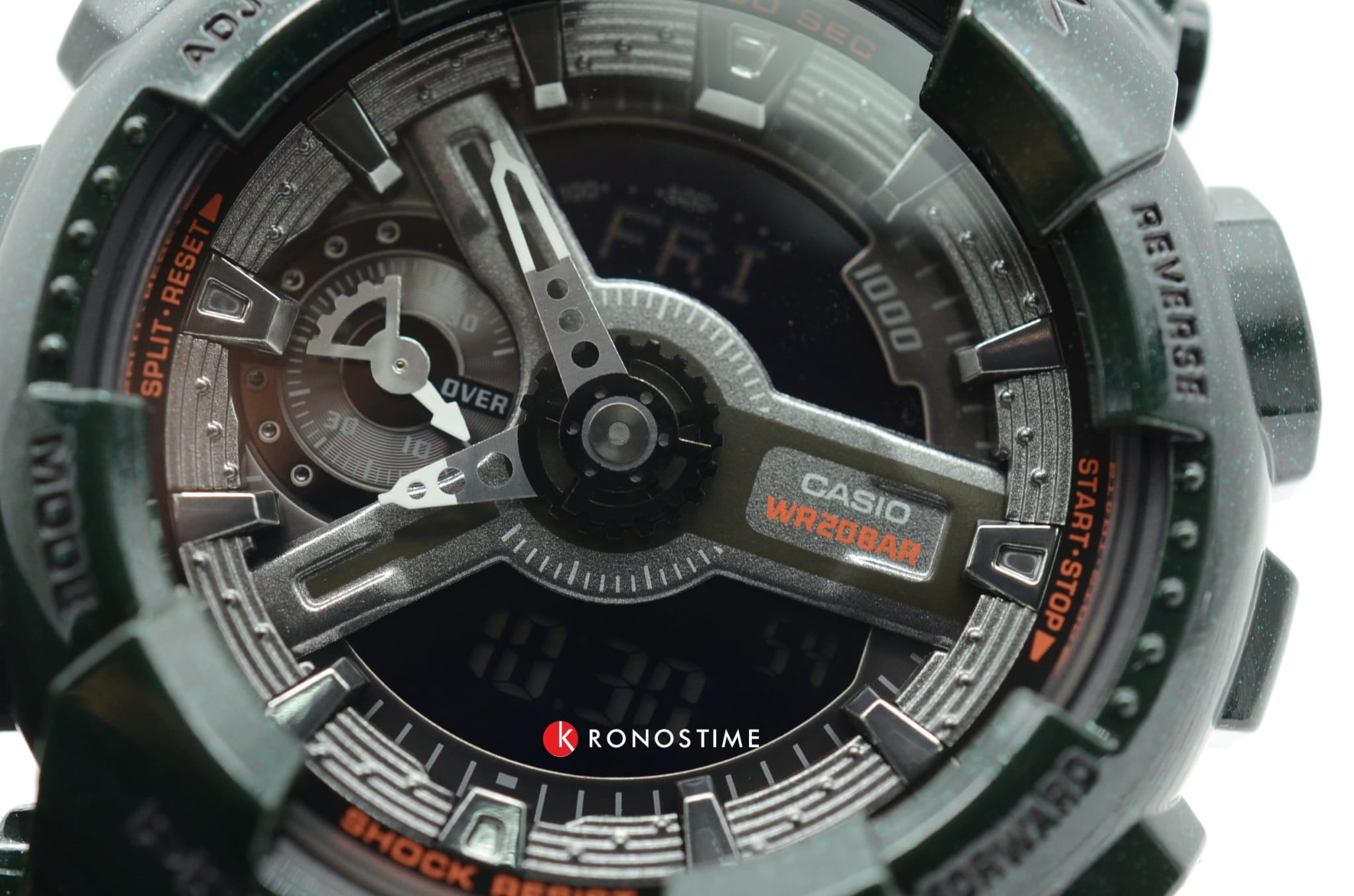 Тёмно-зелёная расцветка металлик великолепно гармонирует с хромовыми элементами циферблата. Несмотря на внушительный вес, модель отличается лёгким весом и комфортно сидит на запястье. Наручные часы обладают противоударным корпусомУдаропрочный корпусМеханизм заключён в корпус, выполненный из современных материалов, устойчивых к ударам, механическим повреждениям и падению с высоты: инновационный пластик, карбон, нержавеющая сталь, титан., который стойко переносит удары и падения с высоты. Он надёжно защищает японский кварцевый механизм, благодаря которому часы показывают время с абсолютной точностью. Батарейка рассчитана на 3 года работы. Автоматическая светодиодная подсветкаСветодиодная подсветкаСветодиодная или LED-подсветка обеспечивает появление яркого холодного свечения за счёт LED-элементов - маленьких лампочек. Они потребляют минимальное количество энергии, чаще всего можно встретить 1 светодиод, в нижней части циферблата. циферблата. Минеральное стекло. Сохранение водонепроницаемости до 20 бар. Функции: мировое времяМировое время Полезное часовое усложнение, отображающее время в основных городах и известных областях по всему миру, оно связано с часовыми поясами, удобно для путешественников и бизнесменов. , таймер обратного отсчёта, хронографХронографФункция позволяет измерять отрезки времени с особой точностью: часы, минуты, секунды. Верным признаком хронографа является наличие на циферблате 3 дополнительных окошек-счётчиков., будильник, автоматический календарь, UTCUTCВсемирное кординационное время, не имеющее привязки к географическому положению Гринвича, основывается на атомном отсчёте времени. Регулировка времени осуществляется более точно, чем устаревшее GMT.
