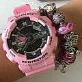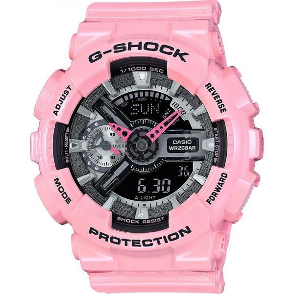 Противоударные женские наручные часы в стильном модном исполнении. Кварцевые часы круглой формы с черным фоном циферблата. Корпус из пластика с минеральным стеклом прочно удерживается на руке пластиковым браслетом розового цвета. Часы GMA-S110MP-4A2 снабжены множеством дополнительных функций - секундомер, таймер обратного отсчета, календарь, кроме того в часах есть автоматическая LED-подсветка дисплея, которая активируется как при нажатии кнопки, так и при повороте/наклоне руки. Ежечасный сигнал, повтор сигнала будильника, функция перемещения стрелок. Элемент питания в часах CR1220 расчитан на работу в течении 3 лет. Защита от магнитных полей. Водонепроницаемость часов от 200 метров (возможны занятия дайвингом).
