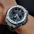 Лаконичный дизайн напоминает о классическом облике механических часов, серебристый блеск нержавеющей стали 316L никогда не потеряет актуальности. Противоударный корпусУдаропрочный корпусМеханизм заключён в корпус, выполненный из современных материалов, устойчивых к ударам, механическим повреждениям и падению с высоты: инновационный пластик, карбон, нержавеющая сталь, титан. с лёгкостью выдерживает любые нагрузки и падения с высоты, дополнительную устойчивость к повреждениям придаёт полимерная составляющая. Модель серии G-Steel - это часы на солнечной батарее , есть индикатор заряда аккумулятора. Минеральное стекло. Циферблат со светодиодной подсветкойСветодиодная подсветкаСветодиодная или LED-подсветка обеспечивает появление яркого холодного свечения за счёт LED-элементов - маленьких лампочек. Они потребляют минимальное количество энергии, чаще всего можно встретить 1 светодиод, в нижней части циферблата.. Приём радиосигнала. Таймер, секундомер, мировое времяМировое время Полезное часовое усложнение, отображающее время в основных городах и известных областях по всему миру, оно связано с часовыми поясами, удобно для путешественников и бизнесменов. , будильник, UTCUTCВсемирное кординационное время, не имеющее привязки к географическому положению Гринвича, основывается на атомном отсчёте времени. Регулировка времени осуществляется более точно, чем устаревшее GMT.