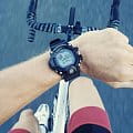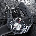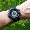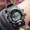 Мужские японские часы с минеральным стекломМинеральное стеклоМинеральное стекло представляет собой искусственно выращенный минерал кварца. Такое стекло отличается особой устойчивостью к повреждениям и царапинам. Уступает по некоторым качествам сапфировому стеклу. Casio G-Shock GW-9400-1E из коллекции G-Shock представляют собой многофункциональный помощник с брутальным дизайном. Модель серии Rangeman отличается стильной чёрной расцветкой с красными деталями, брендовый аксессуар с массивными элементами оформления точно станет запоминающейся деталью образа. Наручные часы оснащены различными функциями, которые по достоинству оценят любители путешествовать: отображение восхода и заката солнца, термометр -10°C /+60°C, барометр, альтиме́трАльтиме́трАльтиме́тр (или высотоме́р) – прибор для измерения высоты над уровнем моря. Необходим при ориентировании в горах, в т.ч. в условиях плохой видимости; оповещает о перепадах высот, о достижении заданной точки и т.д., таймерТаймерОтсчитывает секунды в обратном направлении в заданном интервале времени., мировое времяМировое время Полезное часовое усложнение, отображающее время в основных городах и известных областях по всему миру, оно связано с часовыми поясами, удобно для путешественников и бизнесменов. , 5 будильниковБудильникБуди́льник — часы, в заданный момент времени подающие звуковой, световой и/или в редких случаях другой сигнал., секундомерСекундомерСекундоме́р — прибор, способный измерять интервалы времени с точностью до долей секунды., цифровой компас. Японский кварцевый механизм. Технология Tough SolarTough SolarТехнология основана на подзарядке аккумулятора от источника солнечного света, специальная панель улавливает солнечные лучи и преобразует их в энергию для работы часов. Достаточно пары минут нахождения на солнце для функционирования часов в течении суток.. Индикатор уровня заряда аккумулятора. Ударопрочный корпусУдаропрочный корпусМеханизм заключён в корпус, выполненный из современных материалов, устойчивых к ударам, механическим повреждениям и падению с высоты: инновационный пластик, карбон, нержавеющая сталь, титан. из пластика. Водозащита 20 бар. Автоматическая светодиодная подсветкаСветодиодная подсветкаСветодиодная или LED-подсветка обеспечивает появление яркого холодного свечения за счёт LED-элементов - маленьких лампочек. Они потребляют минимальное количество энергии, чаще всего можно встретить 1 светодиод, в нижней части циферблата.. Габариты: 55,2 x 53,5 x 18,2 мм.