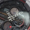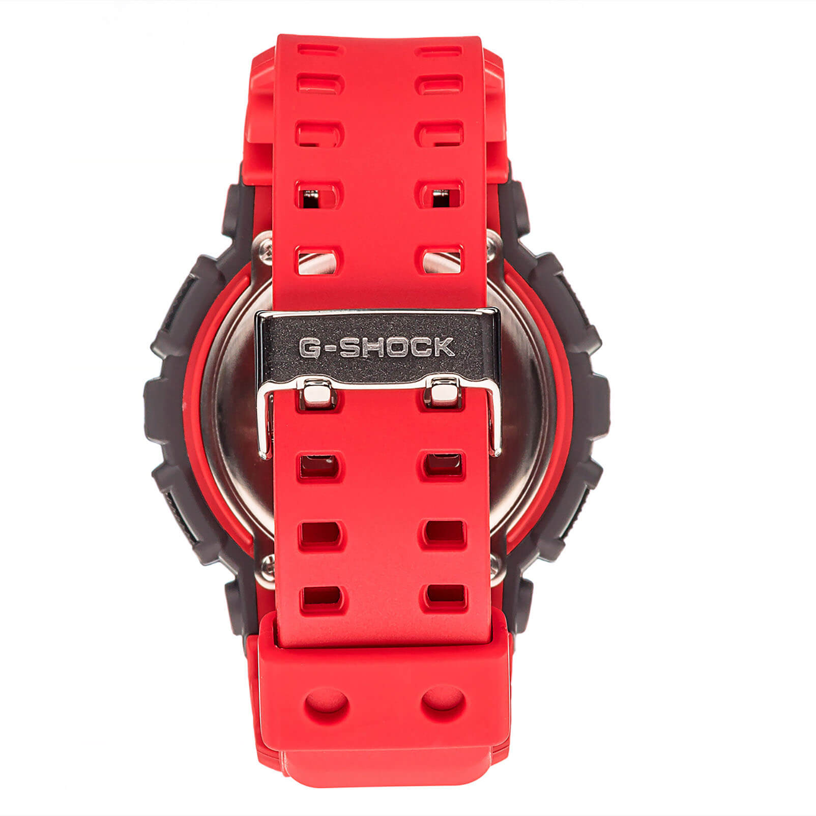 Противоударный корпусУдаропрочный корпусМеханизм заключён в корпус, выполненный из современных материалов, устойчивых к ударам, механическим повреждениям и падению с высоты: инновационный пластик, карбон, нержавеющая сталь, титан. модели позаимствован у серии GA-100, обновления коснулись циферблата и стрелок. Наручные часы представлены в минималистичном исполнении, но яркие элементы оформления делают их интереснее. Для изготовления аксессуара был выбран полимерный пластик, это способствует максимальной защите японского кварцевого механизма от ударов и вибрации. Точность хода +/- 15 секунд в месяц. Батарейка рассчитана на 2 года. Закаленное минеральное стекло. СветодиоднаяСветодиодная подсветкаСветодиодная или LED-подсветка обеспечивает появление яркого холодного свечения за счёт LED-элементов - маленьких лампочек. Они потребляют минимальное количество энергии, чаще всего можно встретить 1 светодиод, в нижней части циферблата. подсветка. Комфортный и гибкий красный ремешок. Отсутствие восприимчивости к магнитным полям. Водонепроницаемость 20 бар. Секундомер, средняя скорость пути, 5 будильников, хронографХронографФункция позволяет измерять отрезки времени с особой точностью: часы, минуты, секунды. Верным признаком хронографа является наличие на циферблате 3 дополнительных окошек-счётчиков., автоматический календарь, мировое времяМировое время Полезное часовое усложнение, отображающее время в основных городах и известных областях по всему миру, оно связано с часовыми поясами, удобно для путешественников и бизнесменов. , таймер. Габариты: 55 x 51,2 x 16,9 мм.