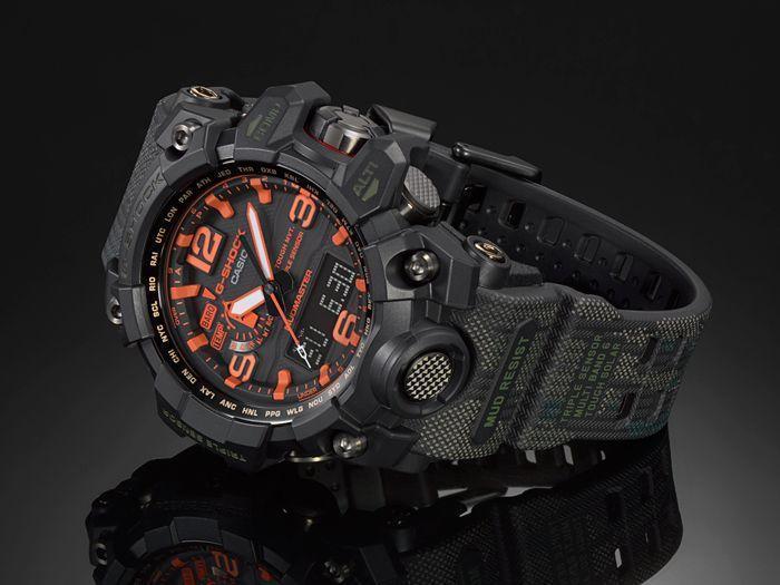 Лимитированные мужские часы из коллекции Master of G выполнены в стиле миллитари. Исполнение премиум-класса, грязеустойчивые, с водонепроницаемостью в 20 атмосфер. Кварцевые часы с аналоговым и цифровым способами отображения времени, и с корпусом, выполненым из пластика и высокопрочной стали. Черный циферблат защищает надежное сапфировое стекло. Браслет ярко-оранжевого цвета из прочного пластика. Вес часов 119 грамм. Часы Casio GWG-1000-1A9 оснащены множеством дополнительных функций: компас, термометр, таймер обратного отсчета, барометр, высотомер, секундомер, индикатор запаса хода, подсветкой стрелок и дисплея. Заряжаются часы от солнечной батареи, в режиме сохранения энергии сохраняют работоспособность без подзарядки в течении 25 месяцев.