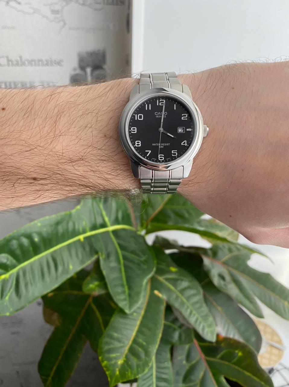 Приятный циферблат и удобный браслет. Водонепроницаемость до 50м. Показывают дату.