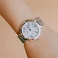 Стильные женские наручные часы, выполненные в fashion стиле. Кварцевые часы с элементом питания SR920SW. Корпус и браслет часов выполнены из высокопрочной стали с антикоррозийными свойствами. Синие индексы и стрелки на стальном циферблате. Водонепроницаемость часов 50 метров, минеральное стекло, устойчивое к царапинам. Украшены часы кристаллами Swarovski.