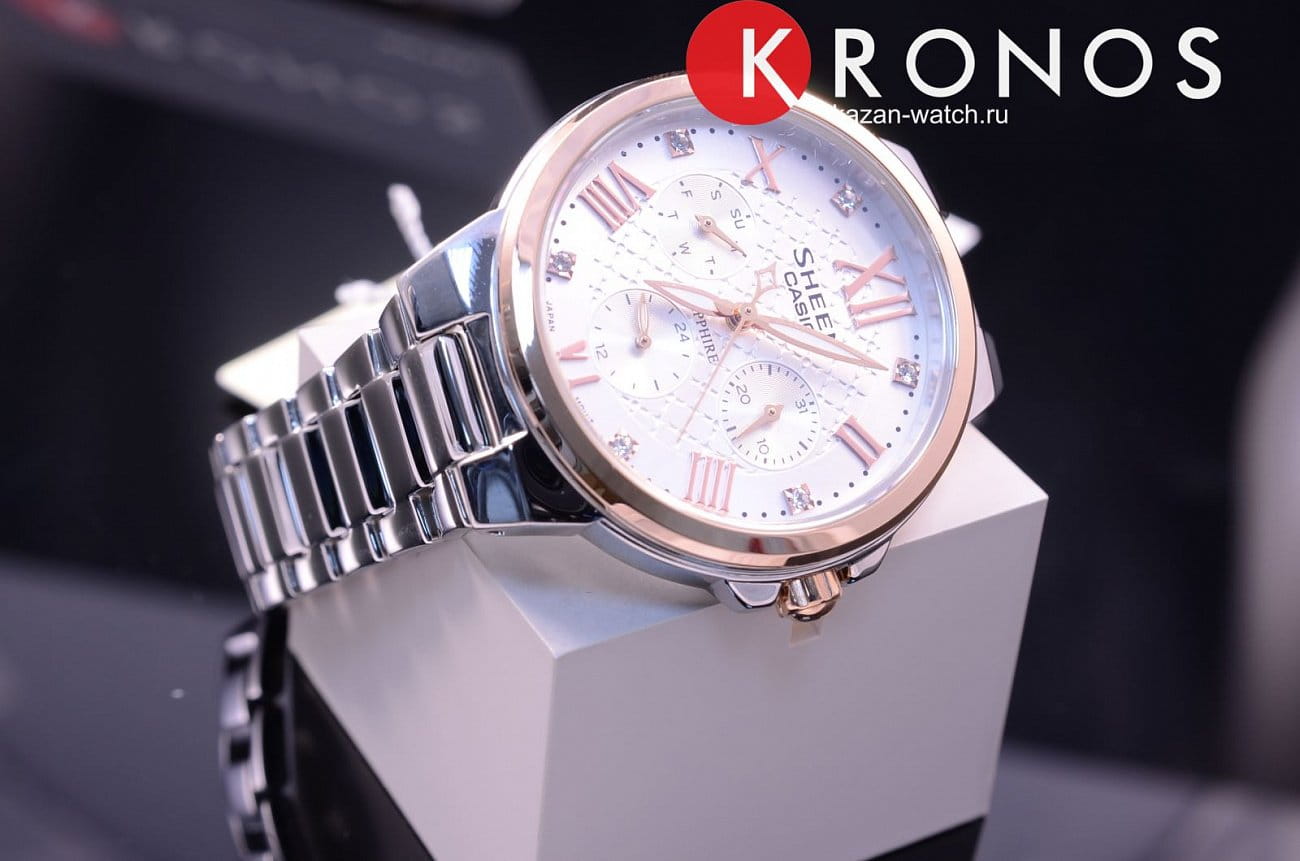 Напоминаем, что коллекция Casio Sheen - это линейка ультра-стильных женских фешн-часов в стальном корпусе, способных украсить собой самое изысканное и утонченное женское запястье. Особенностью коллекции, сделавшей ее популярной во всем мире, является использование знаменитых кристаллов Swarovski® в отделке циферблата каждой модели Sheen.