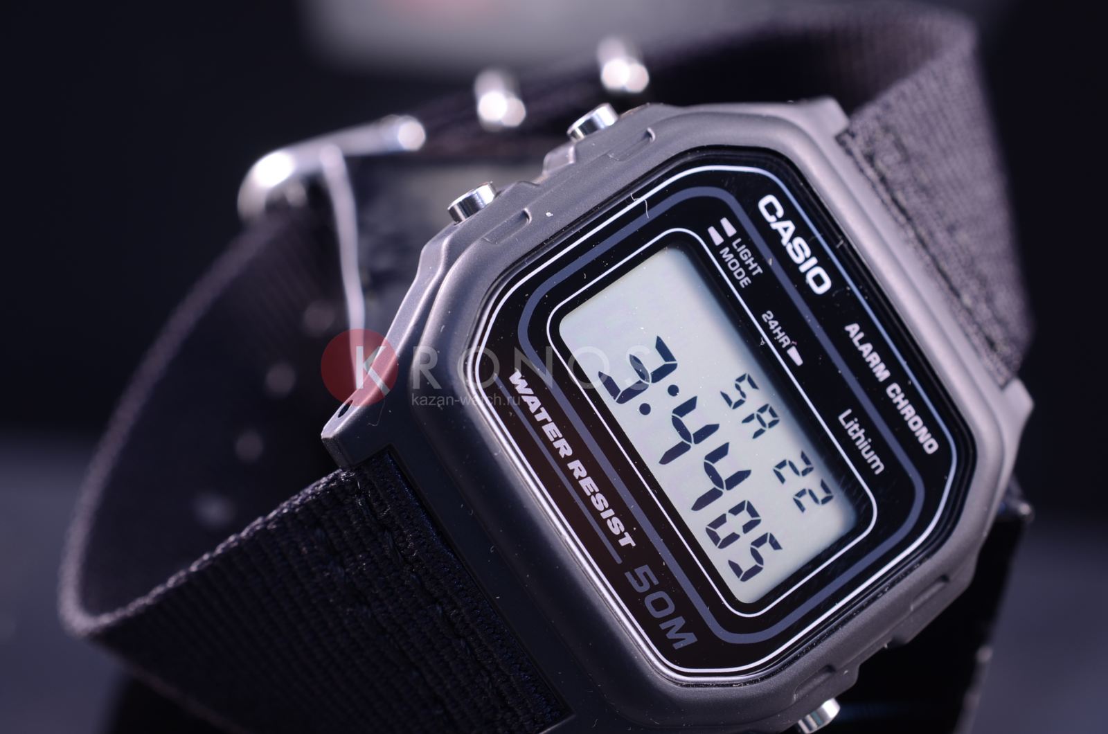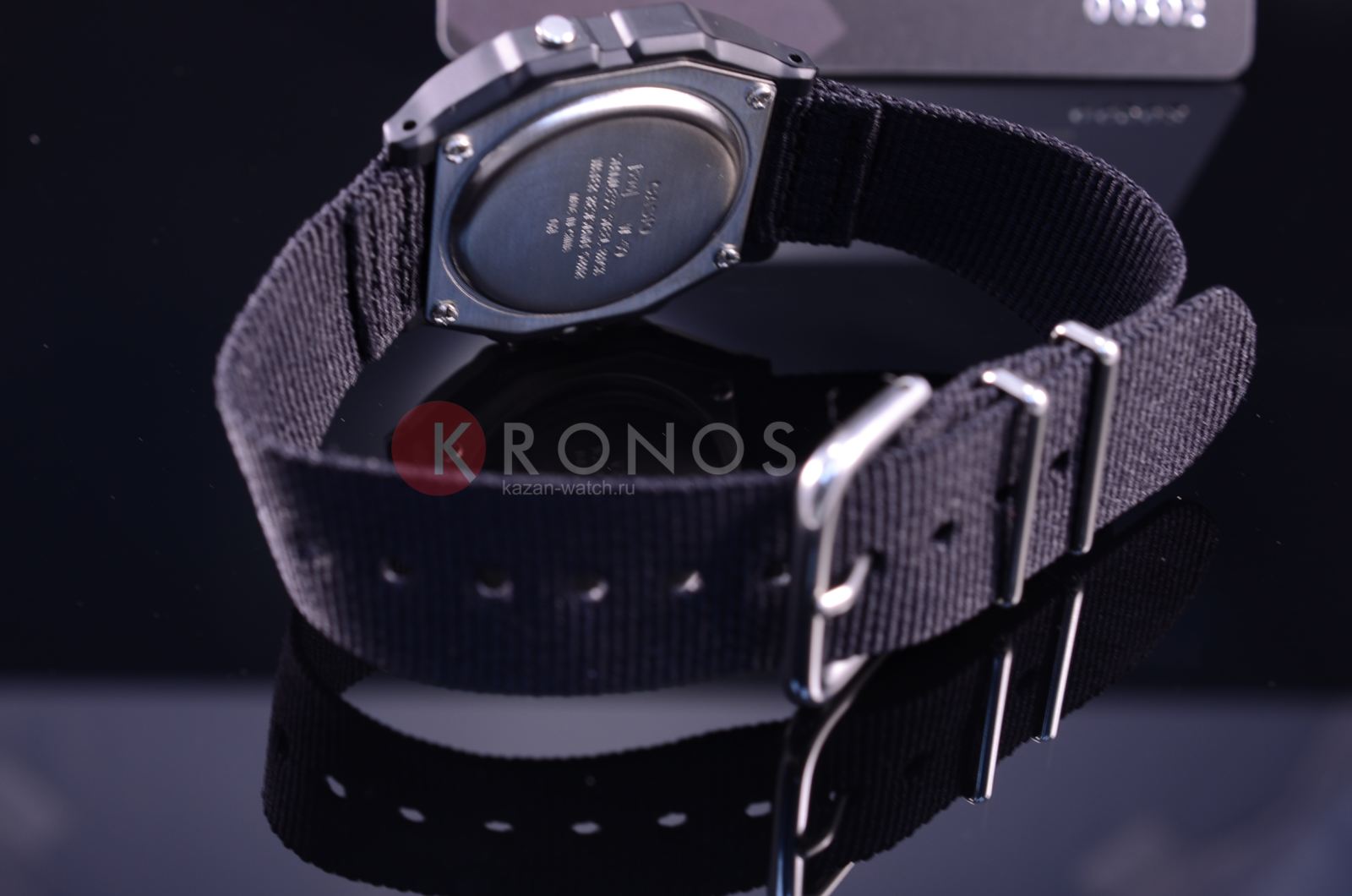 Аккуратный прямоугольный циферблат подсвечивается сбоку микроподсветкой. Секундомер измерят прошедшее время с точностью в 1/100 секунды. Мягкий ремешок из нейлона будет красиво обрамлять запястье. Цифровой способ отображения времени. Экономная батарейка служит 10 лет.