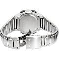 Электронные мужские часы. Оснащены: секундомером, отображением времени в двух часовых поясах, таймером, календарем, будильником, подсветкой. Корпус - Нержавеющая сталь; Стекло - Пластик; Водозащита - 100 м. (WR 100); Материал ремешка - Нержавеющая сталь; Цвет ремешка - Серебристый; Цвет циферблата - Lcd.