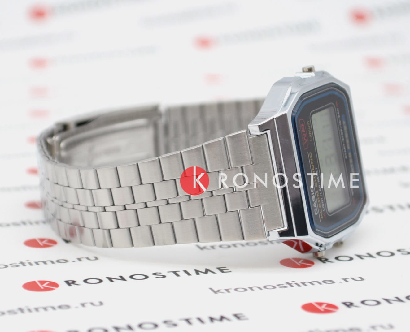 Японские наручные часы с хронографом Casio Vintage A159W-N1, кварцевый механизм с высокой точностью. Класс водозащиты: 30 метров, позволит защитить корпус от случайных брызг или капель дождя. Корпус часов изготовлен из стали, серебристого цвета. ХронографХронографФункция позволяет измерять отрезки времени с особой точностью: часы, минуты, секунды. Верным признаком хронографа является наличие на циферблате 3 дополнительных окошек-счётчиков.. Циферблат подсвечивается светодиодом. СекундомерСекундомерСекундоме́р — прибор, способный измерять интервалы времени с точностью до долей секунды. с точностью показаний 1/100 сек и временем измерения 1 ч. 12-ти и 24-х часовой формат времени. Раскладывающаяся застежка.