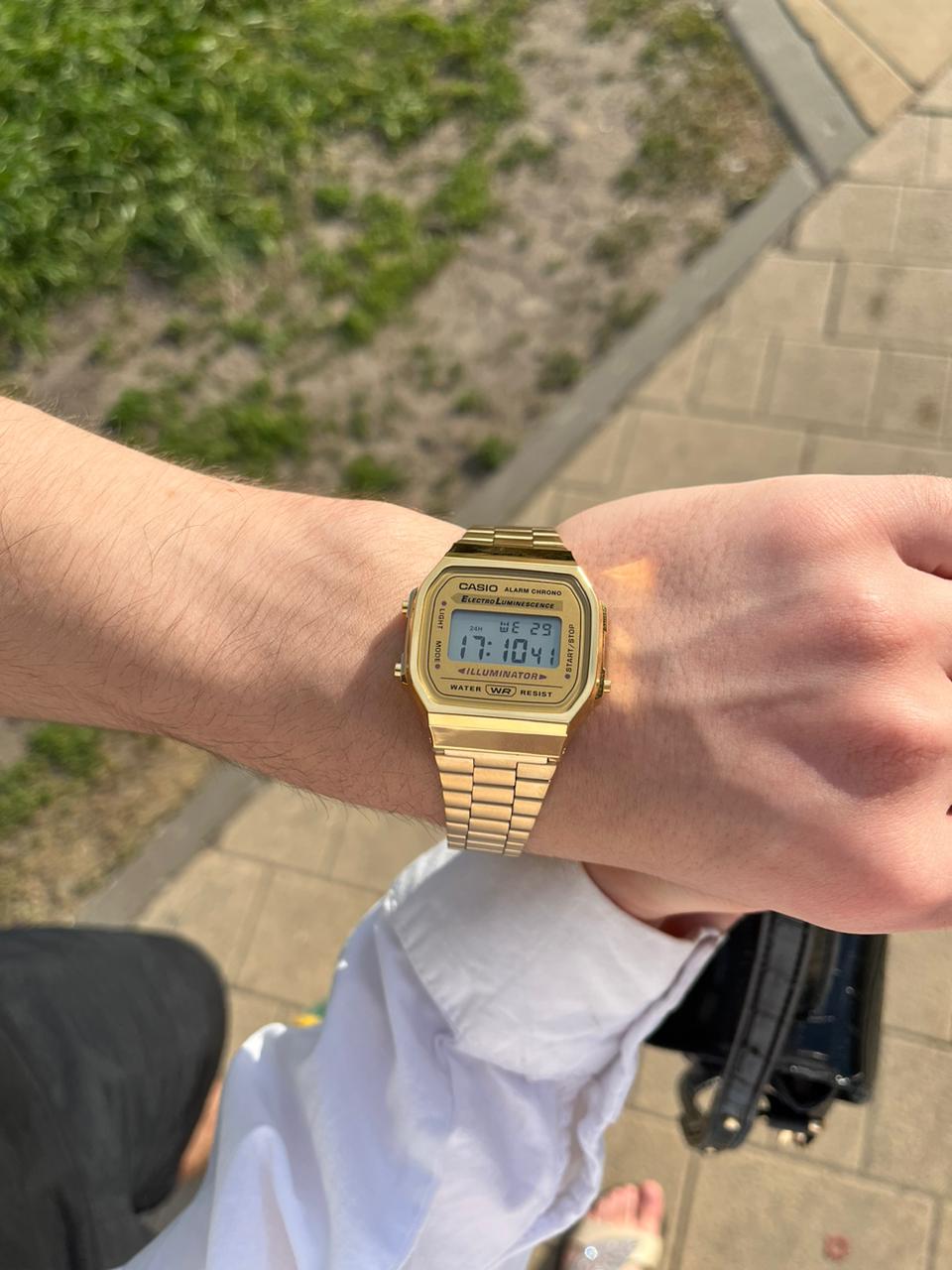 Японские мужские часы с хронографом Casio Vintage A168WG-9WDF (A168WG-9W), кварцевый механизм с высокой точностью. Класс водозащиты: 30 метров, позволит защитить корпус от случайных брызг или капель дождя. Корпус часов изготовлен из пластика, цвета.