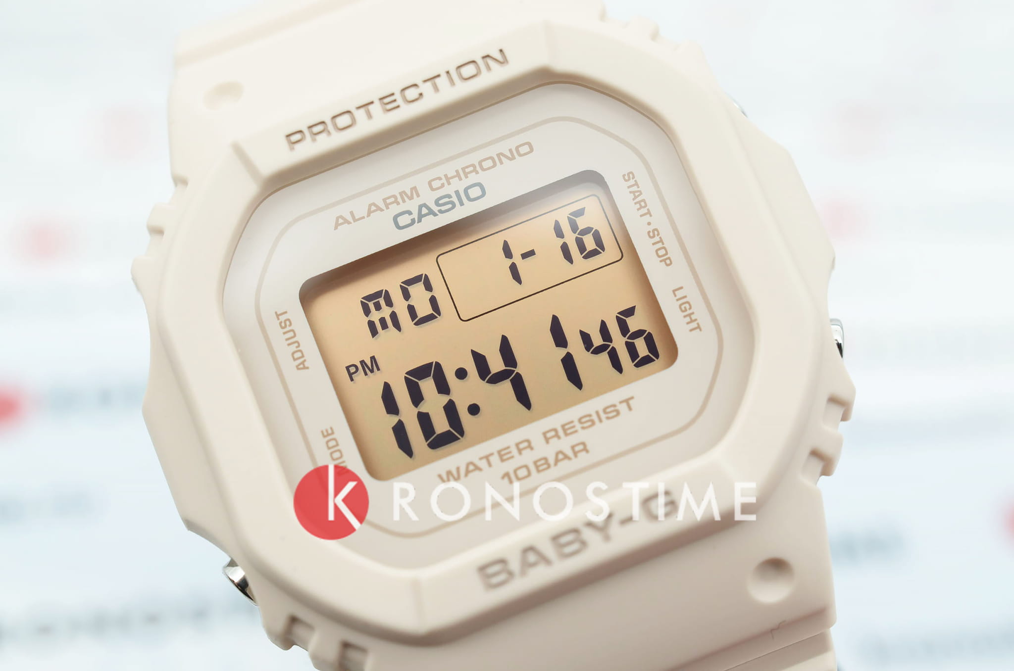 Женские противоударныеУдаропрочный корпусМеханизм заключён в корпус, выполненный из современных материалов, устойчивых к ударам, механическим повреждениям и падению с высоты: инновационный пластик, карбон, нержавеющая сталь, титан. японские часы Casio Baby-G BGD-565-4E, кварцевый механизм с высокой точностью. Класс водозащиты: 100 метров, позволит плавать, нырять и заниматься другими водными видами спорта. Электролюминесцентная подсветкаЭлектролюминесцентная подсветкаЭлектролюминесцентная панель устанавливается под ЖК-экраном часов, при нажатии кнопки электричество преобразуется в свет за счёт подачи напряжения на атомы фосфора, такой тип подсветки позволяет освещать весь циферблат. подсветка дисплея помогает считывать информацию при плохом освещении. Световая индикация сигнала. Цвет подсветки: сине-зеленый. Корпус часов изготовлен из пластика, бежевого цвета. СекундомерСекундомерСекундоме́р — прибор, способный измерять интервалы времени с точностью до долей секунды. с двумя точностями показаний: 1/100с (до 1ч) и 1с (после 1ч) и временем измерения 24ч. Сплит-хронографСплит-хронографИспользуется для измерения продолжительности нескольких временных отрезков, начинающихся одновременно, а заканчивающихся в разное время.. ТаймерТаймерОтсчитывает секунды в обратном направлении в заданном интервале времени. обратного отсчета от 1сек до 24ч с автоповтором. Типы сигналов: ежедневный, ежемесячный, каждый день определенного месяца, на определенную дату. Водонепроницаемость в соответствии с ISO 2281. Ремешок с классической застежкой и системой быстрой замены.