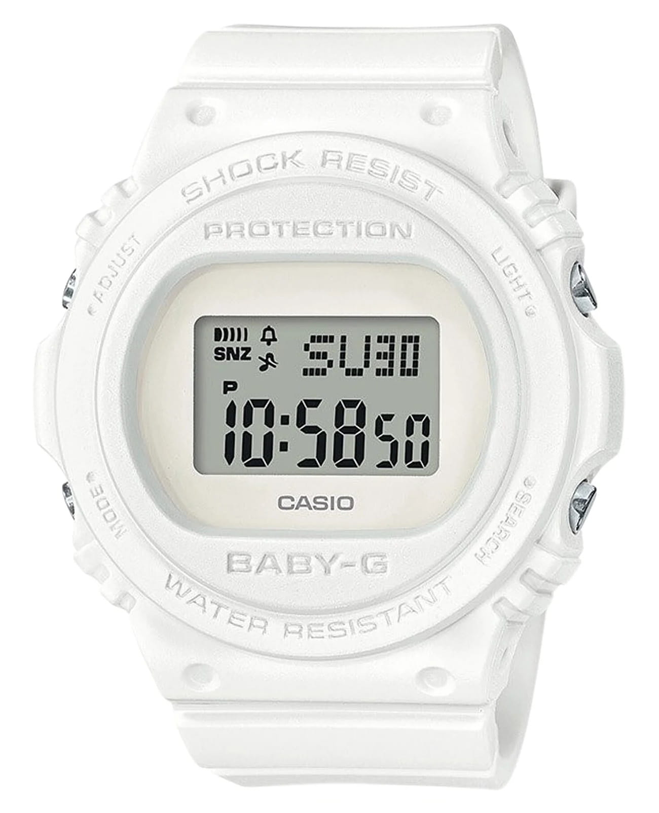 Женские японские ударопрочныеУдаропрочный корпусМеханизм заключён в корпус, выполненный из современных материалов, устойчивых к ударам, механическим повреждениям и падению с высоты: инновационный пластик, карбон, нержавеющая сталь, титан. наручные часы Casio Baby-G BGD-570-7, электронный механизм с высокой точностью. Класс водозащиты: 200 метров, позволит плавать, нырять и заниматься другими водными видами спорта. Корпус часов изготовлен из пластика. Ударопрочный корпусУдаропрочный корпусМеханизм заключён в корпус, выполненный из современных материалов, устойчивых к ударам, механическим повреждениям и падению с высоты: инновационный пластик, карбон, нержавеющая сталь, титан. защищает механизм от ударов и вибрации. Электролюминесцентная подсветкаЭлектролюминесцентная подсветкаЭлектролюминесцентная панель устанавливается под ЖК-экраном часов, при нажатии кнопки электричество преобразуется в свет за счёт подачи напряжения на атомы фосфора, такой тип подсветки позволяет освещать весь циферблат. освещает весь циферблат, после отпускания кнопки свечение продолжается еще некоторое время. Настраиваемое послесвечение 1,5 или 3сек. Цвет подсветки: сине-зеленый. 12-ти и 24-х часовой формат времени. СекундомерСекундомерСекундоме́р — прибор, способный измерять интервалы времени с точностью до долей секунды. с точностью показаний 1/100с и временем измерения 1ч. Сплит-хронографСплит-хронографИспользуется для измерения продолжительности нескольких временных отрезков, начинающихся одновременно, а заканчивающихся в разное время.. ТаймерТаймерОтсчитывает секунды в обратном направлении в заданном интервале времени. обратного отсчета от 1мин до 24ч. Мировое времяМировое время Полезное часовое усложнение, отображающее время в основных городах и известных областях по всему миру, оно связано с часовыми поясами, удобно для путешественников и бизнесменов. – 48 городов (29 часовых поясов). Функции включения/отключения летнего времени и включения/отключения звука. Батарея рассчитана на 3 года. Стальная задняя крышка крепится на 4-х винтах. Ремешок с классической застежкой.