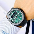 Casio Edifice ECB-10DC-3A – современные мужские часы, сочетающие спортивный дизайн и передовые технологии. Корпус размером 51×48,5 мм и толщиной 12,5 мм выполнен из нержавеющей стали с IP-покрытиемIP-покрытиеМетод ионного напыления. Демонстрирует повышенную устойчивость к истиранию, окислению и химическим веществам. Под воздействием высокого давления и температуры около 1500°C молекулы металла надёжно соединяются с частицами корпуса часов. чёрного цвета, обеспечивая прочность и устойчивость к коррозии. Зелёный циферблат с аналогово-цифровым отображением времени защищён минеральным стекломМинеральное стеклоМинеральное стекло представляет собой искусственно выращенный минерал кварца. Такое стекло отличается особой устойчивостью к повреждениям и царапинам. Уступает по некоторым качествам сапфировому стеклу., устойчивым к царапинам.